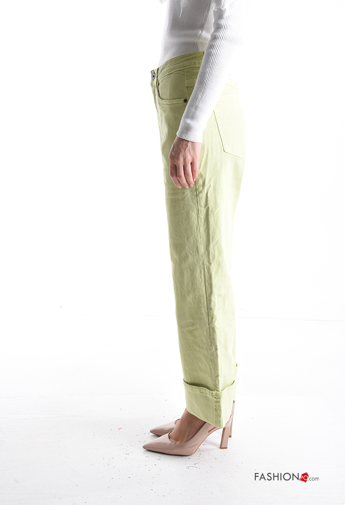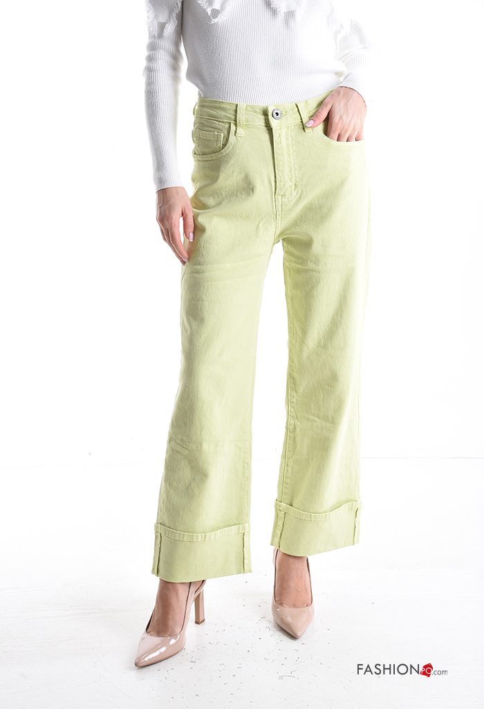 Jeans in Cotone denim wide leg con tasche con bottoni con zip