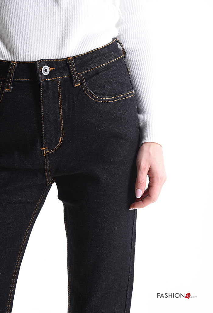 Jeans in Cotone denim con tasche con bottoni con zip