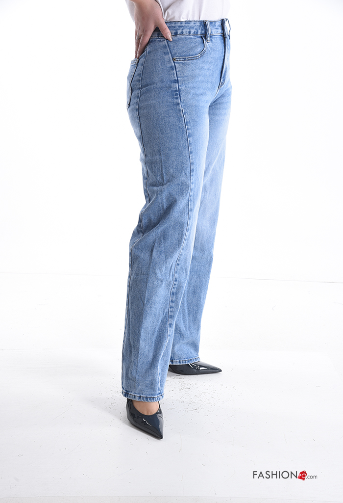 Jeans in Cotone wide leg con tasche