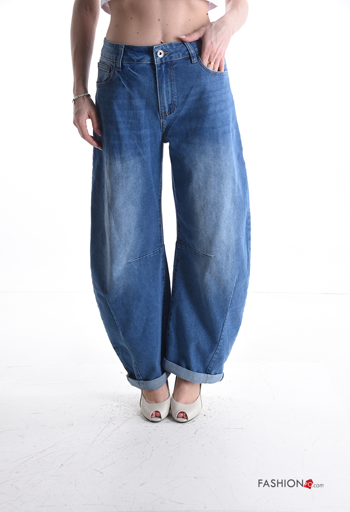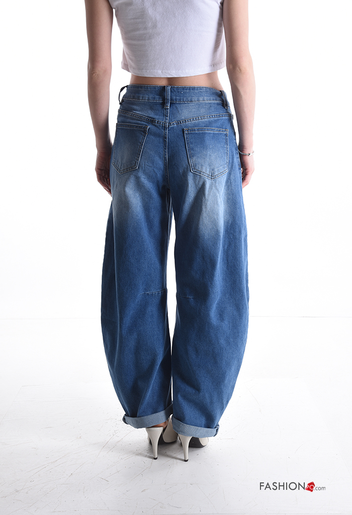 Jeans in Cotone denim con tasche con bottoni con zip