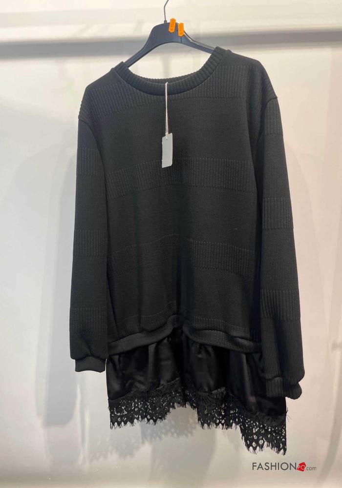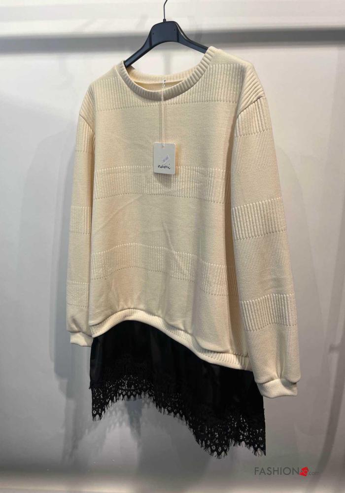 Maglione girocollo pizzo maniche lunghe