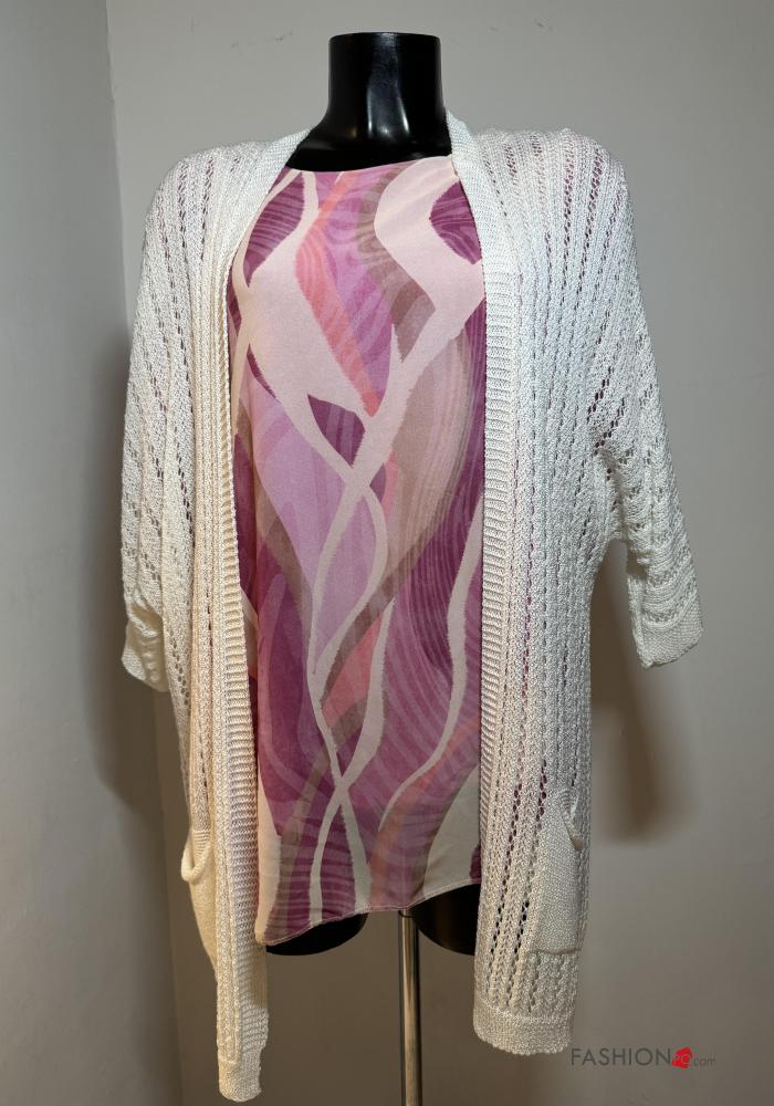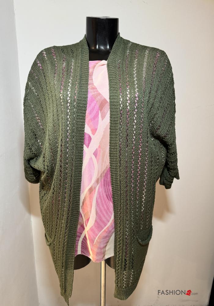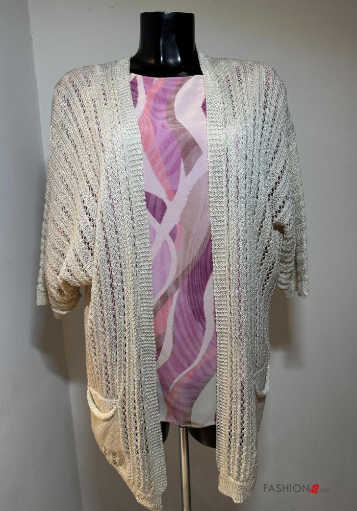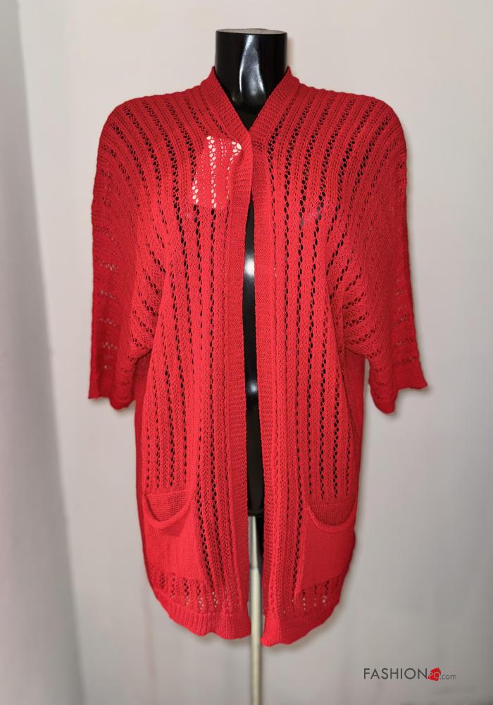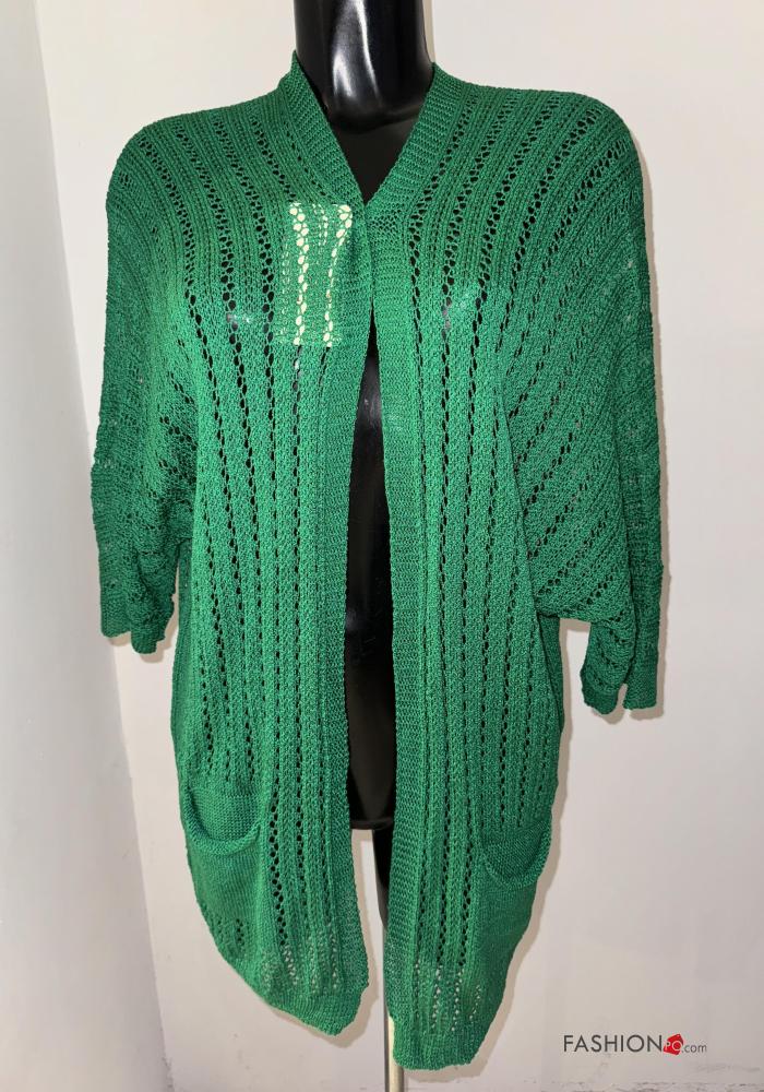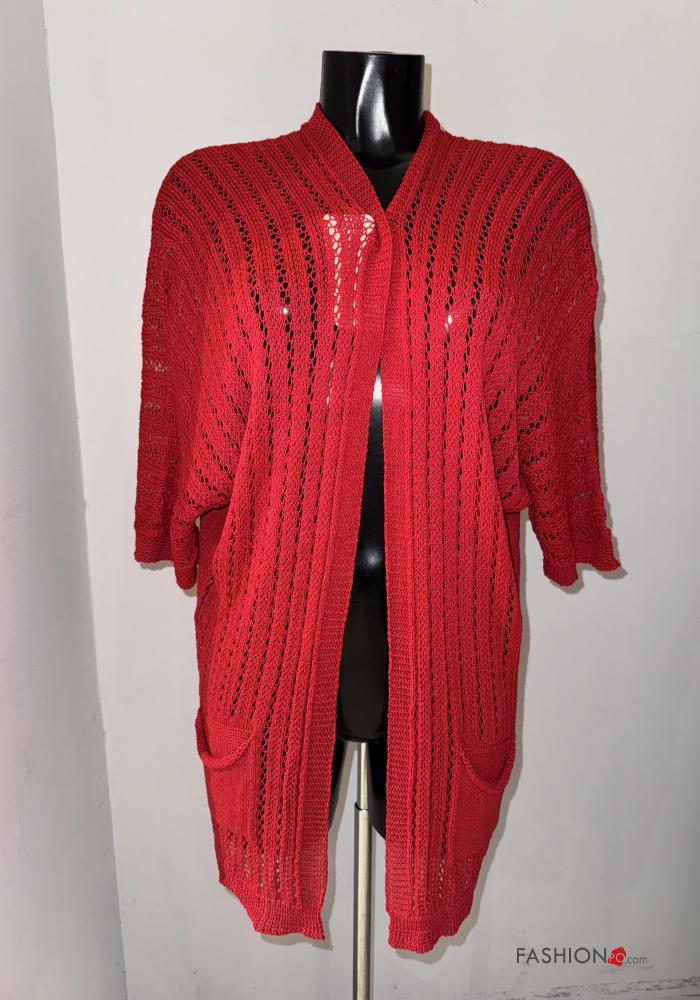 Home > Abbigliamento > Maglieria e Cardigan > Cardigan Fantasia ricamata con tasche maniche a tre quarti