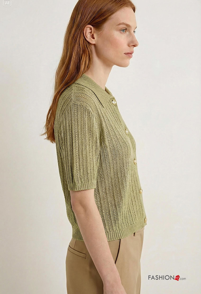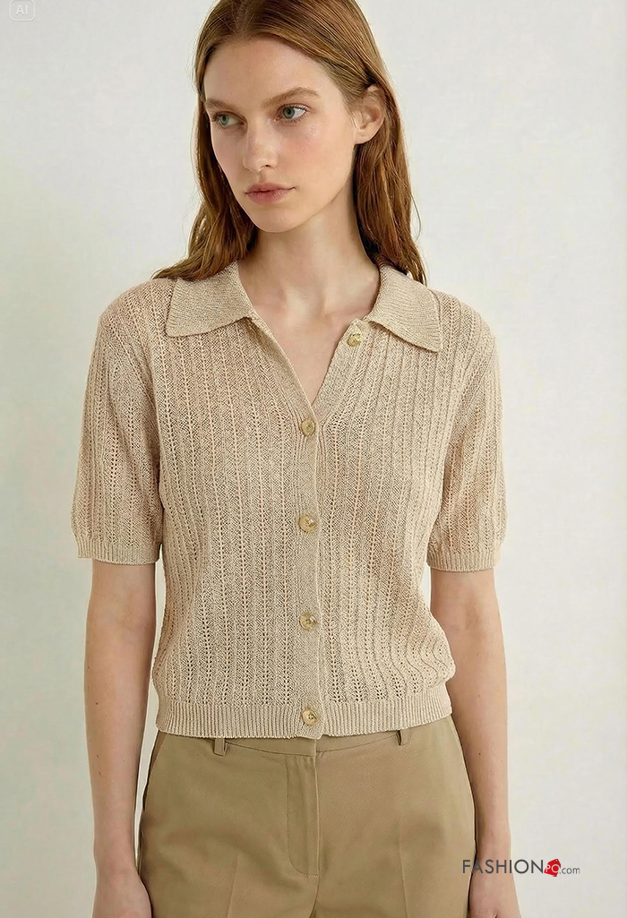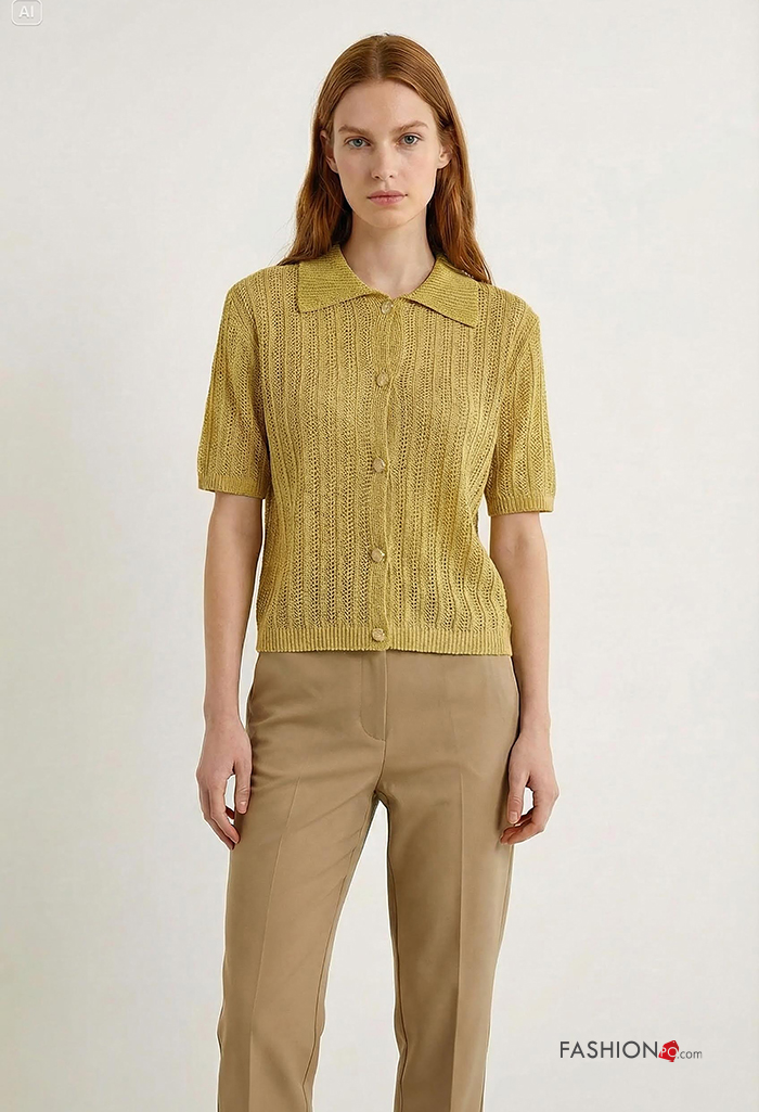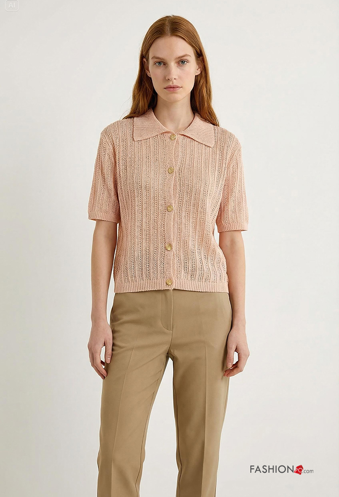 Cardigan maniche corte con colletto Fantasia ricamata con bottoni