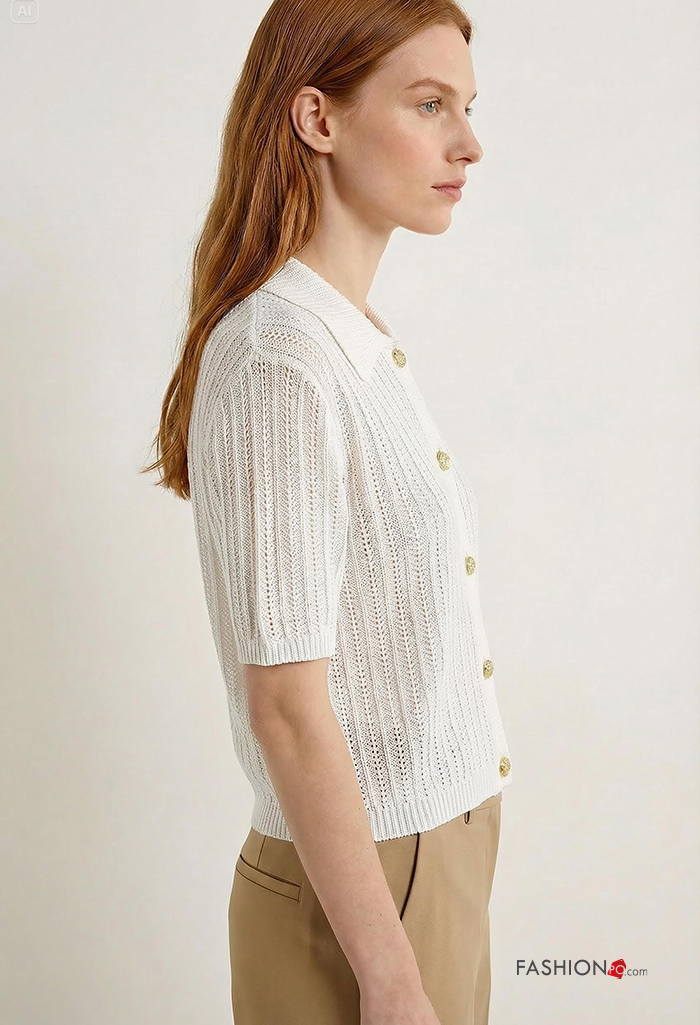 Home > Abbigliamento > Maglieria e Cardigan > Cardigan maniche corte con colletto Fantasia ricamata con bottoni