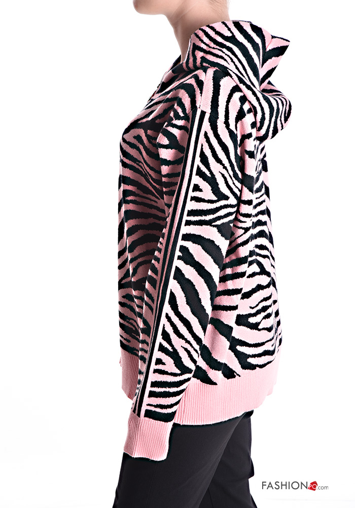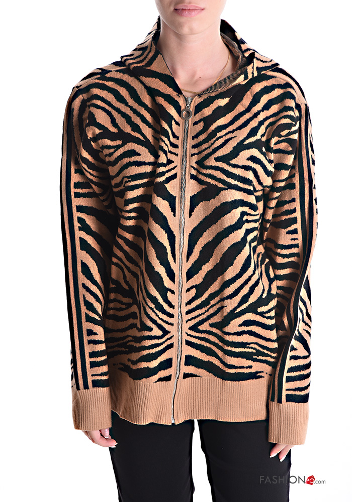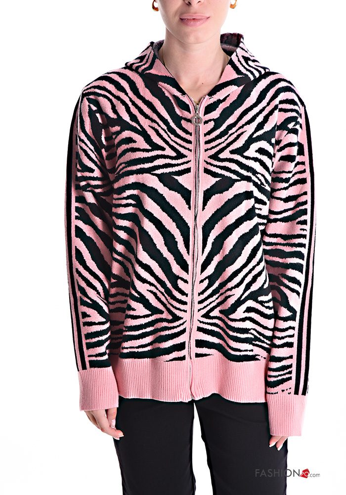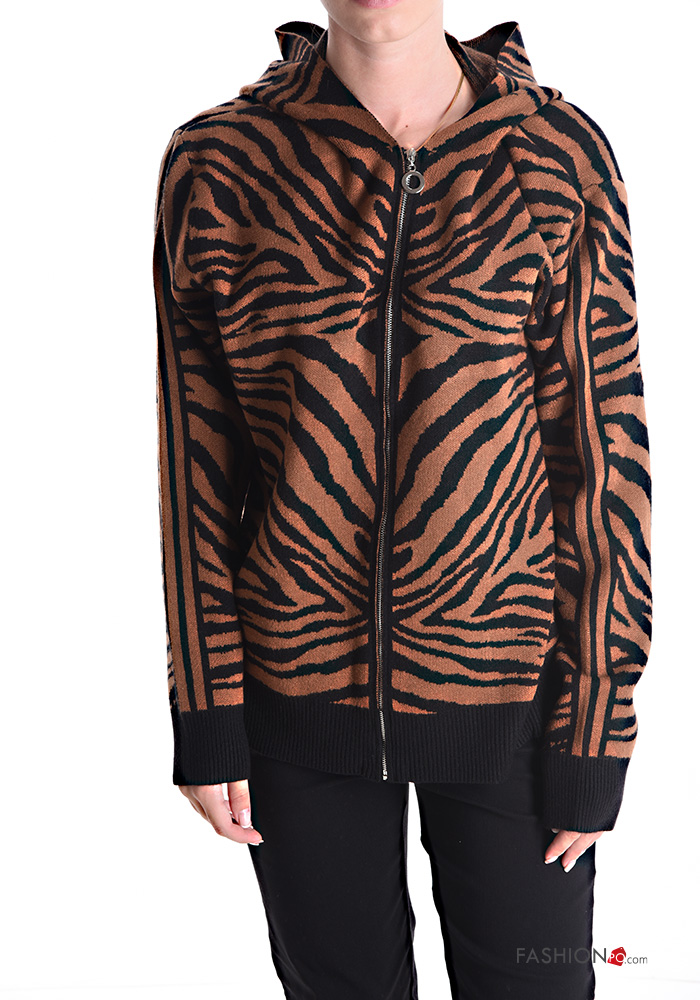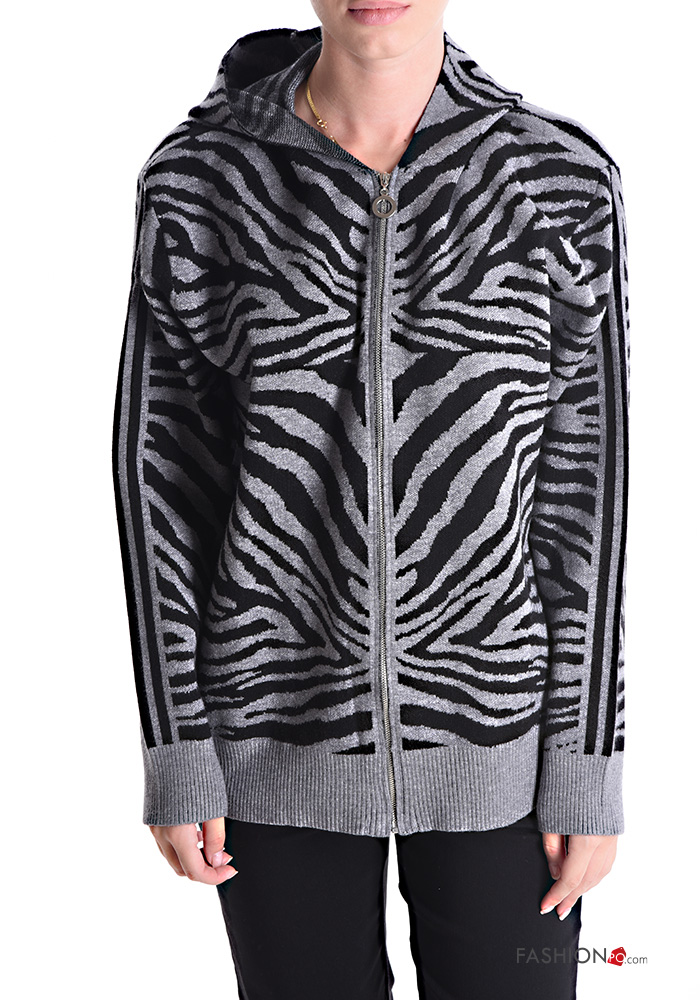 Home > Abbigliamento > Maglieria e Cardigan > Cardigan Fantasia animalier con zip con tasche con cappuccio