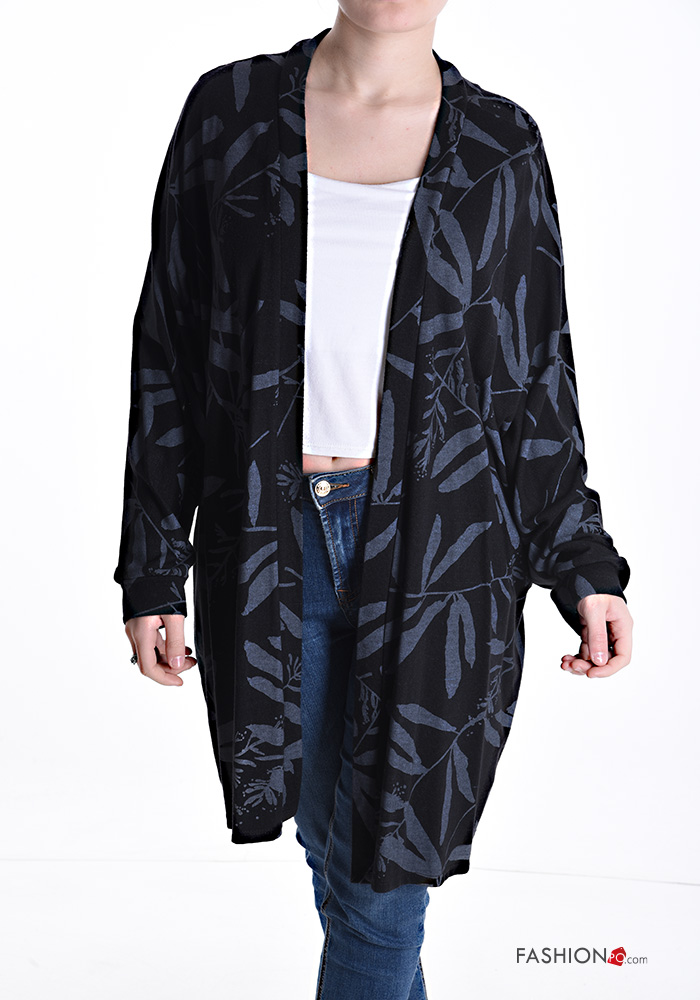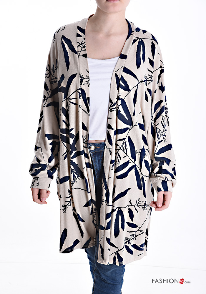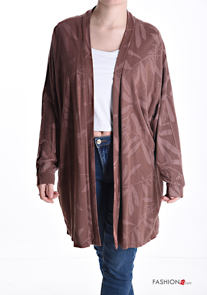 Cardigan maniche lunghe al ginocchio Fantasia con foglie