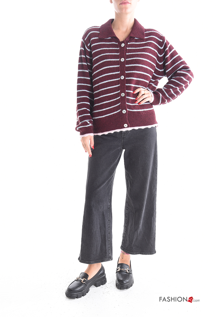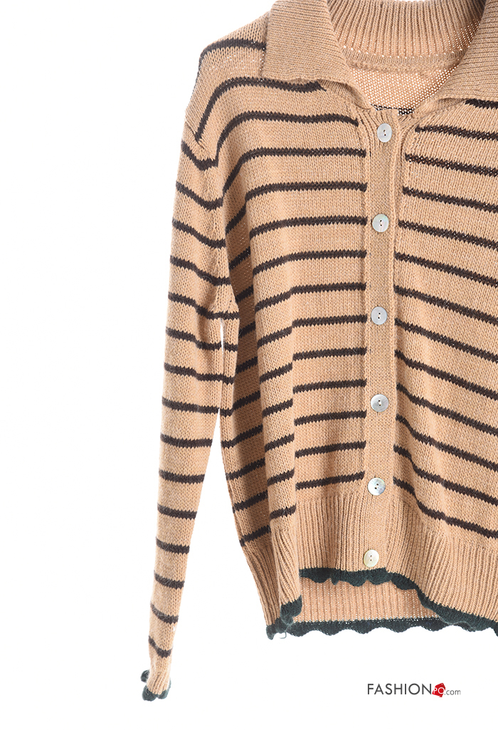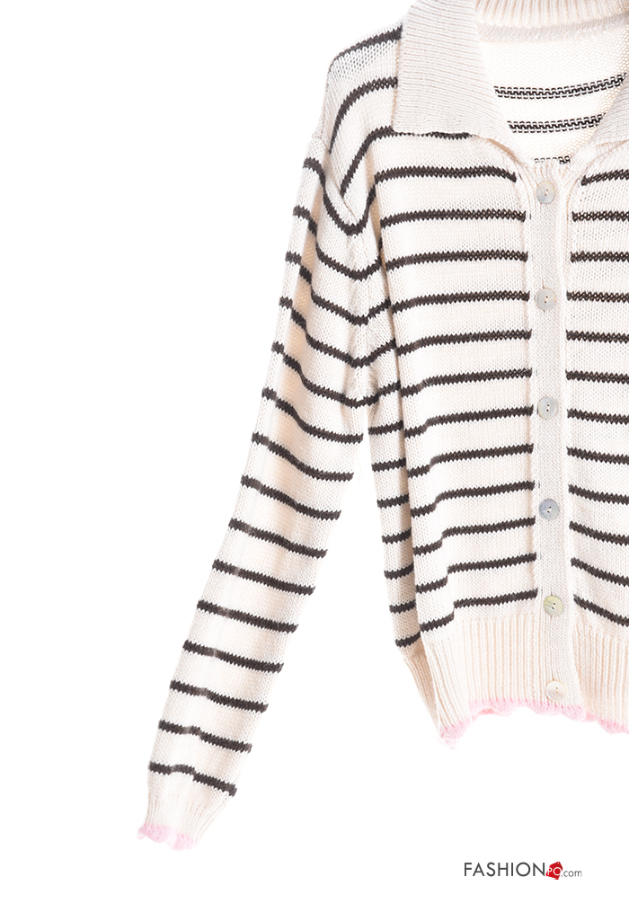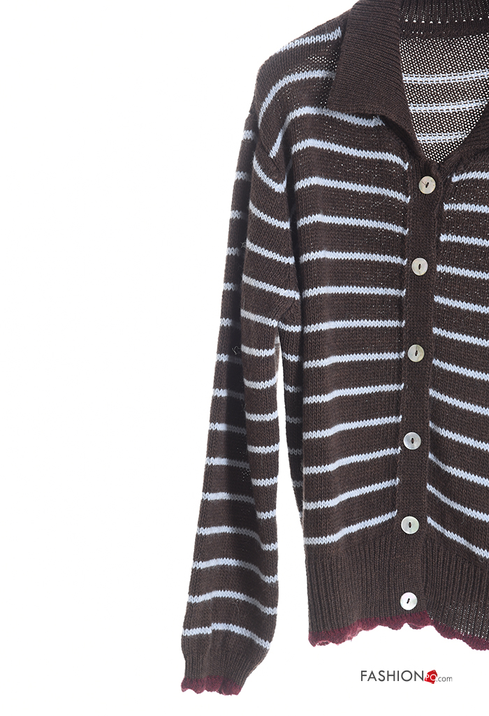 Cardigan in Misto Lana maniche lunghe con colletto Fantasia righe con bottoni