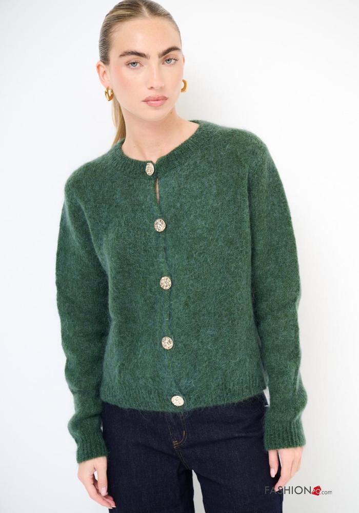 Cardigan in Misto Lana maniche lunghe girocollo con bottoni