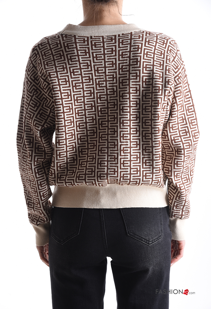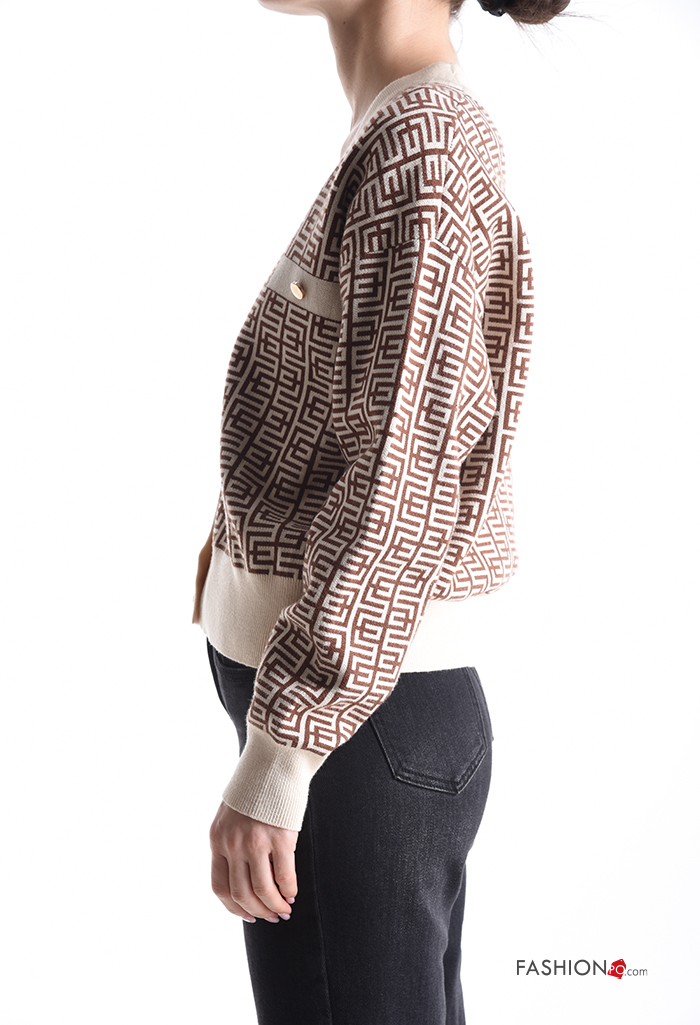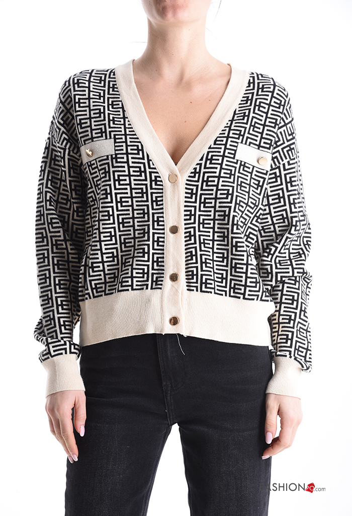Cardigan maniche lunghe Fantasia geometrica con bottoni scollo a V