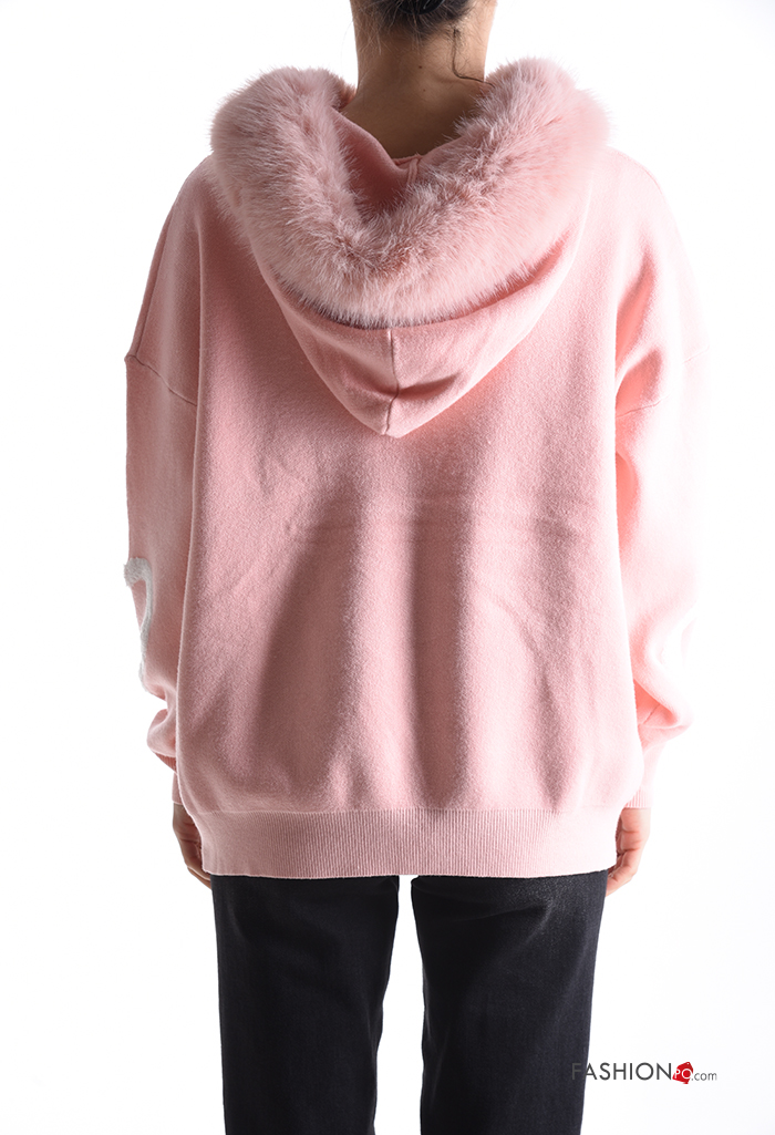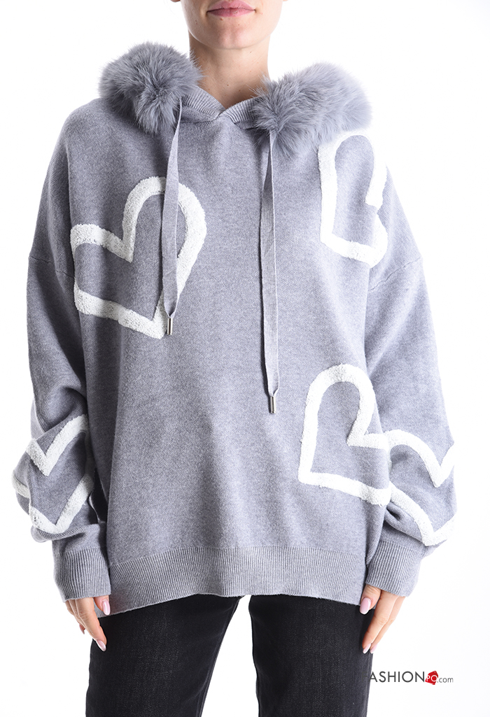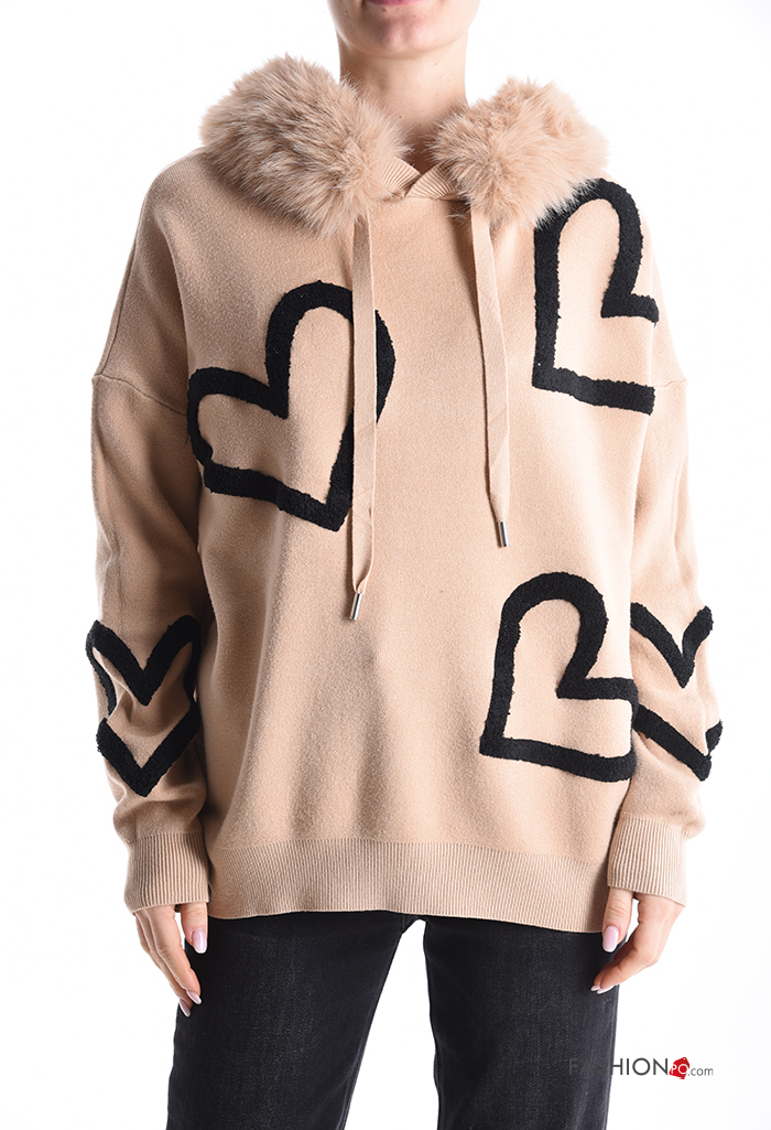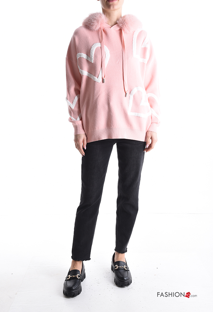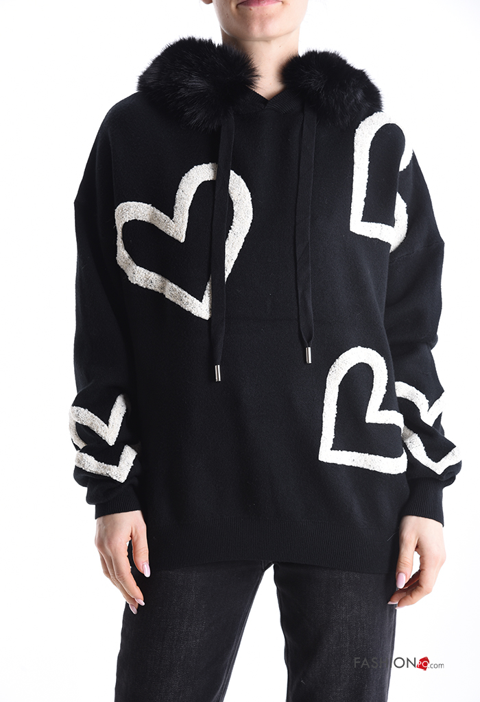 Maglione pelliccia sintetica maniche lunghe Fantasia cuore con cappuccio