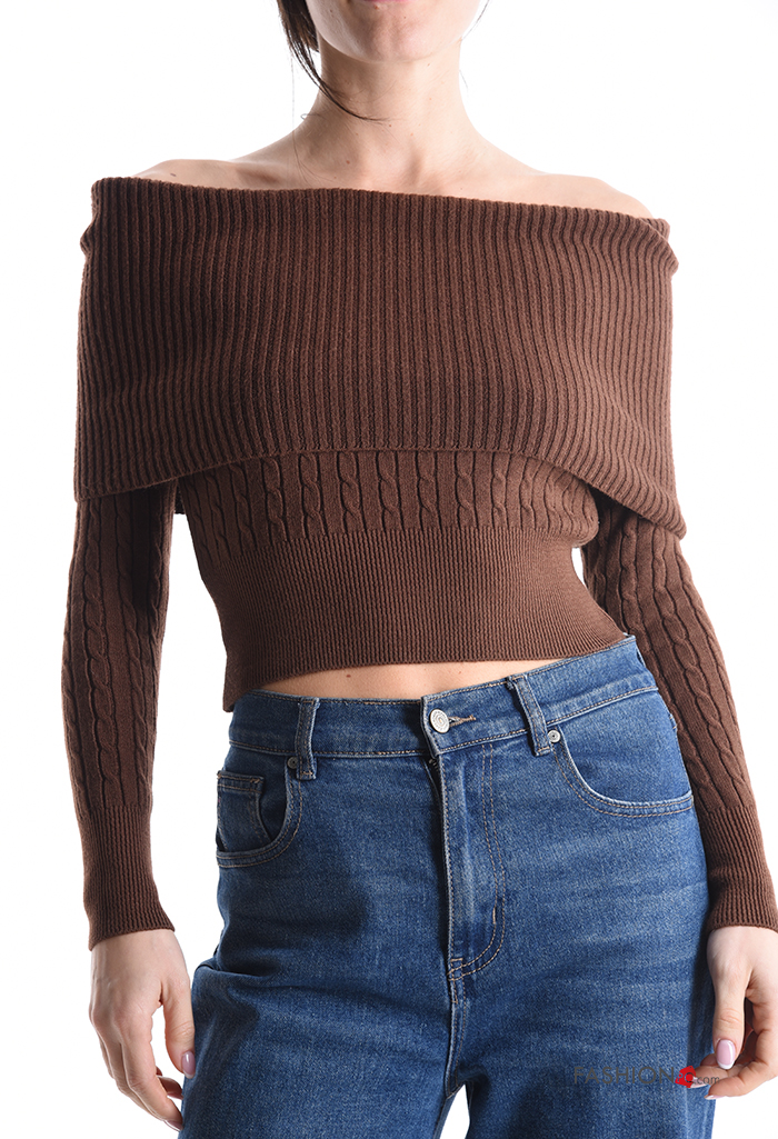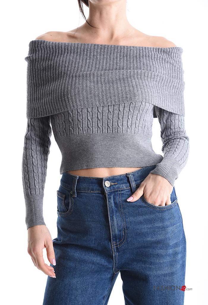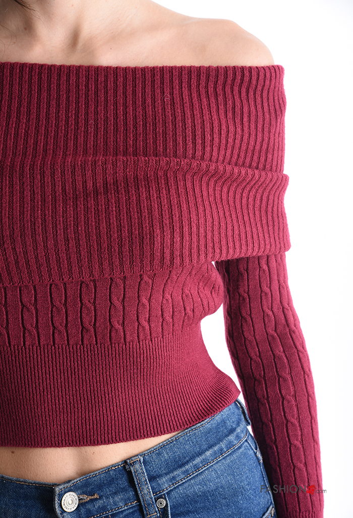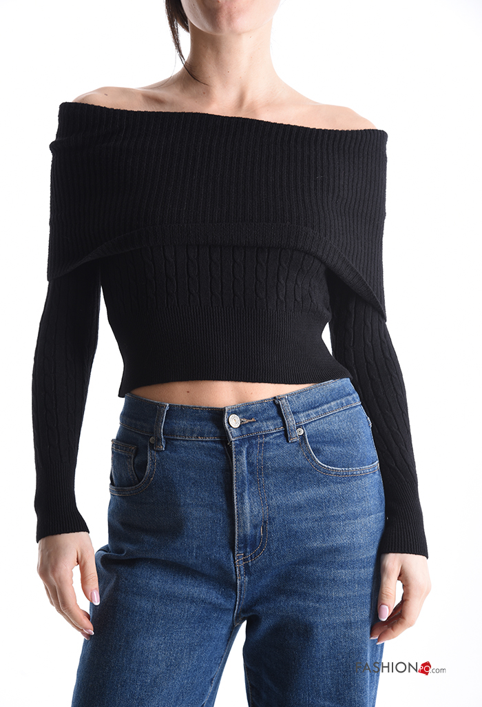 Home > Abbigliamento > Maglieria e Cardigan > Maglione maniche lunghe costine corto scollo alla bardot