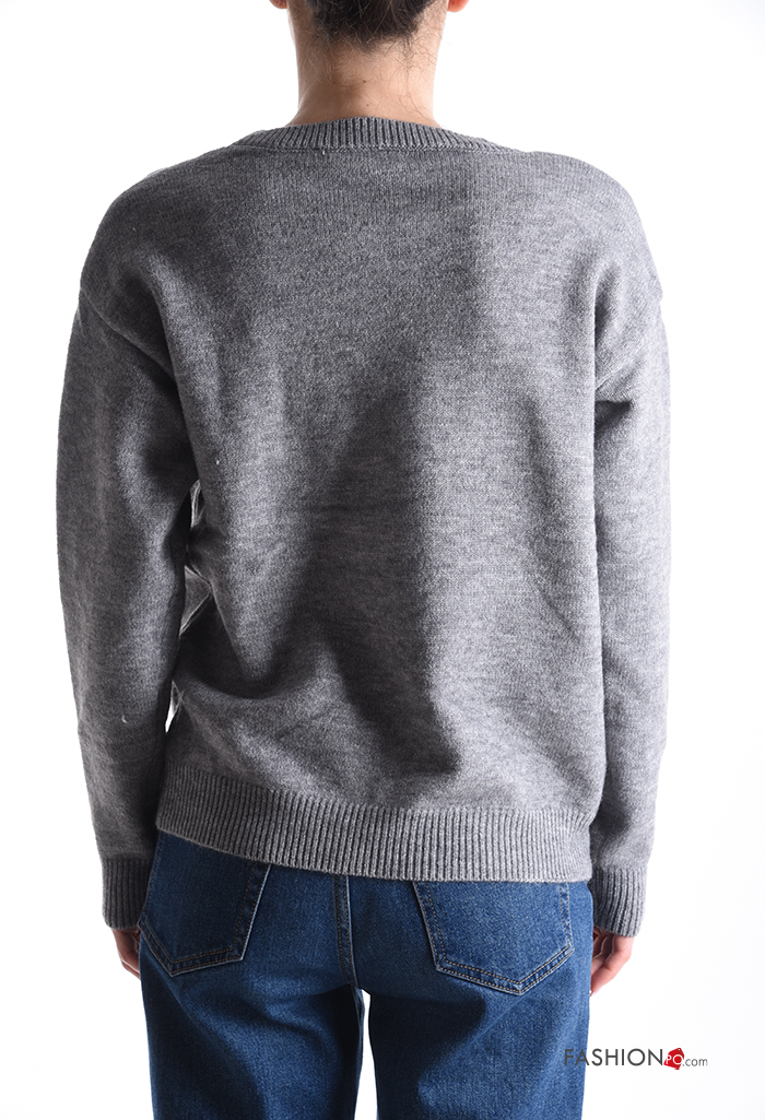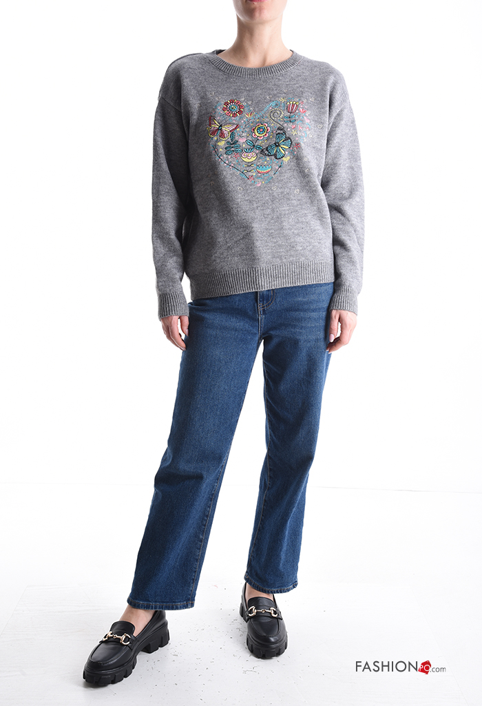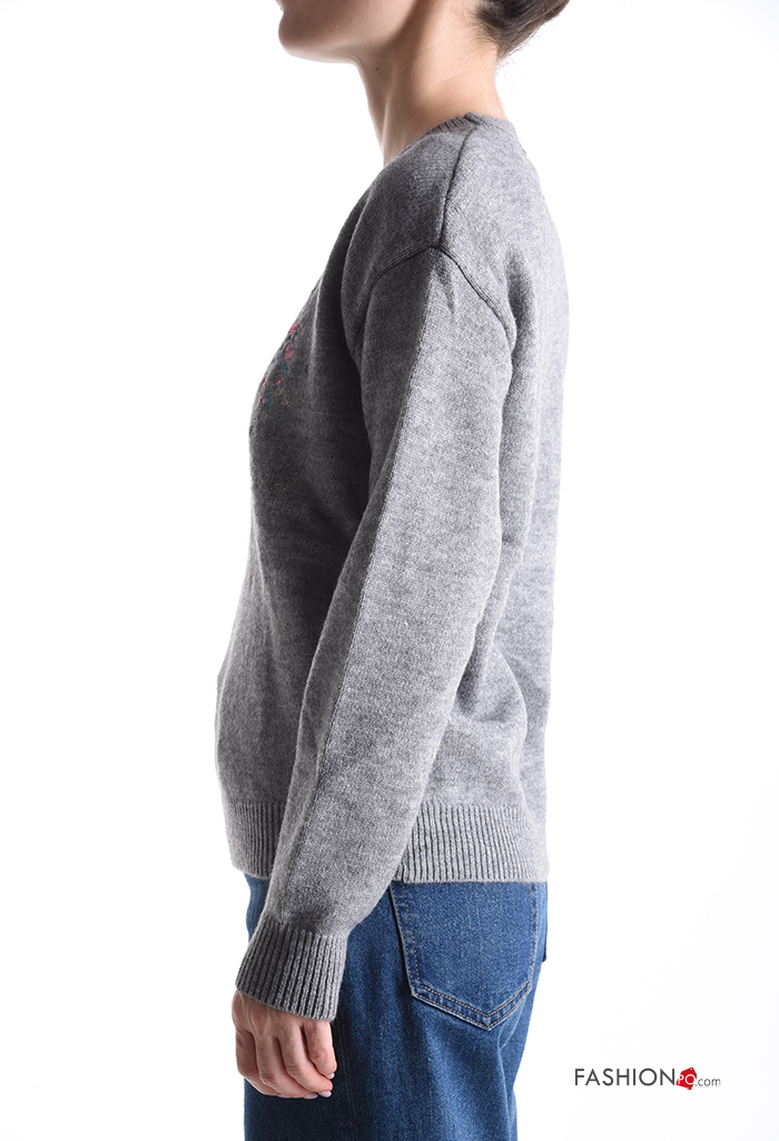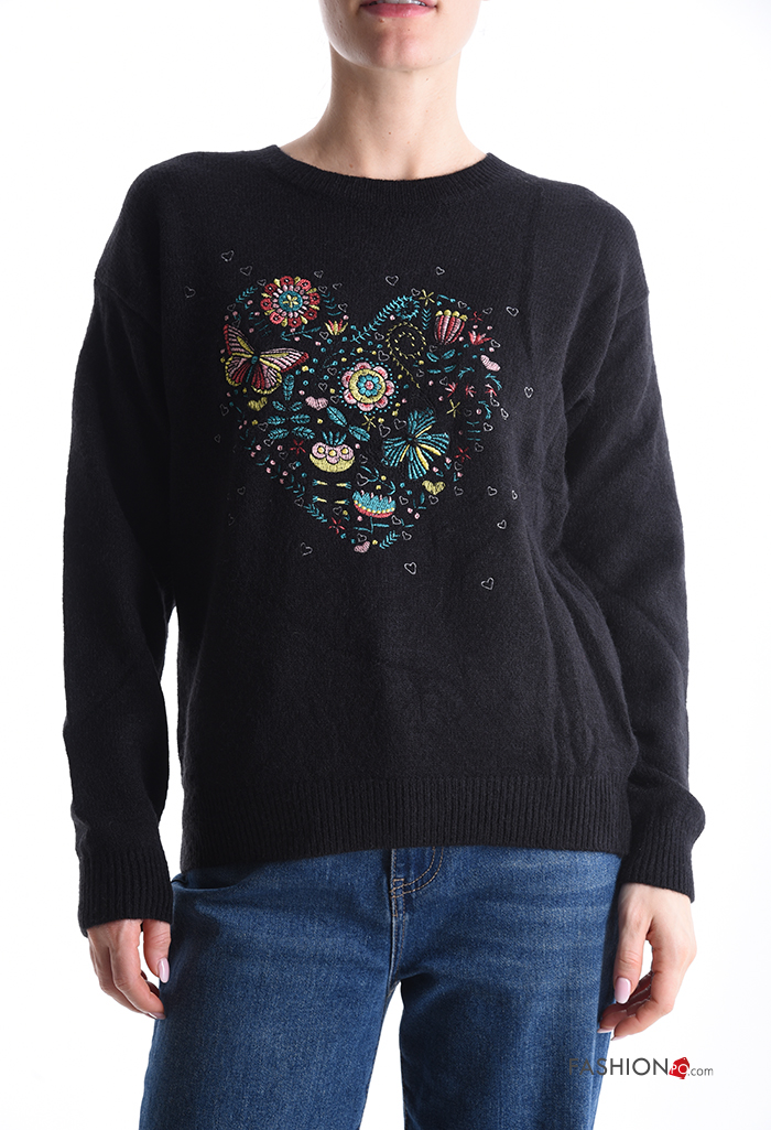 Maglione maniche lunghe girocollo Fantasia ricamata
