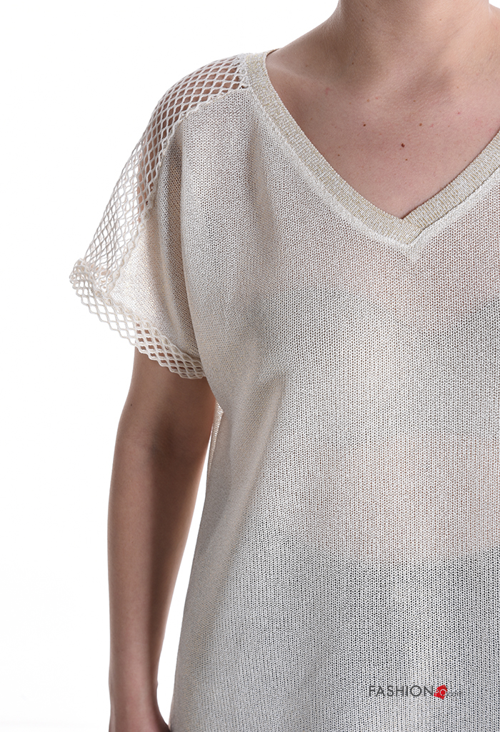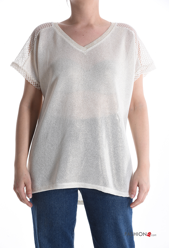 Maglione maniche corte a rete scollo a V