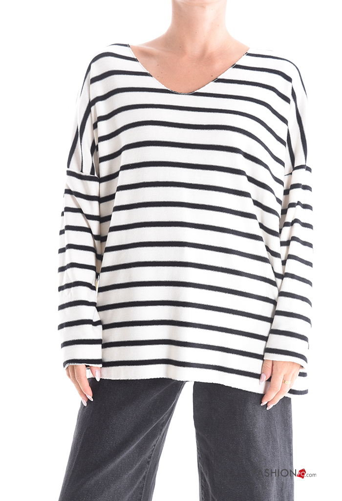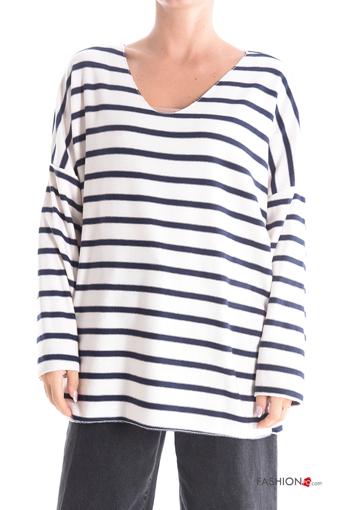 Maglione maniche lunghe Fantasia righe scollo a V