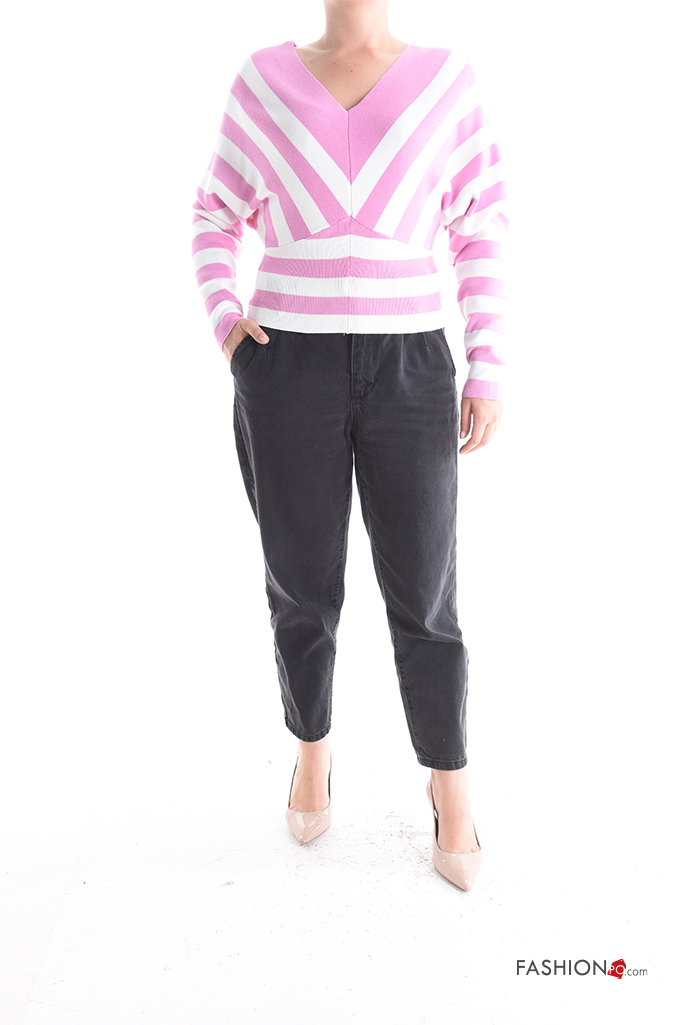 Home > Abbigliamento > Maglieria e Cardigan > Maglione maniche lunghe Fantasia righe scollo a V