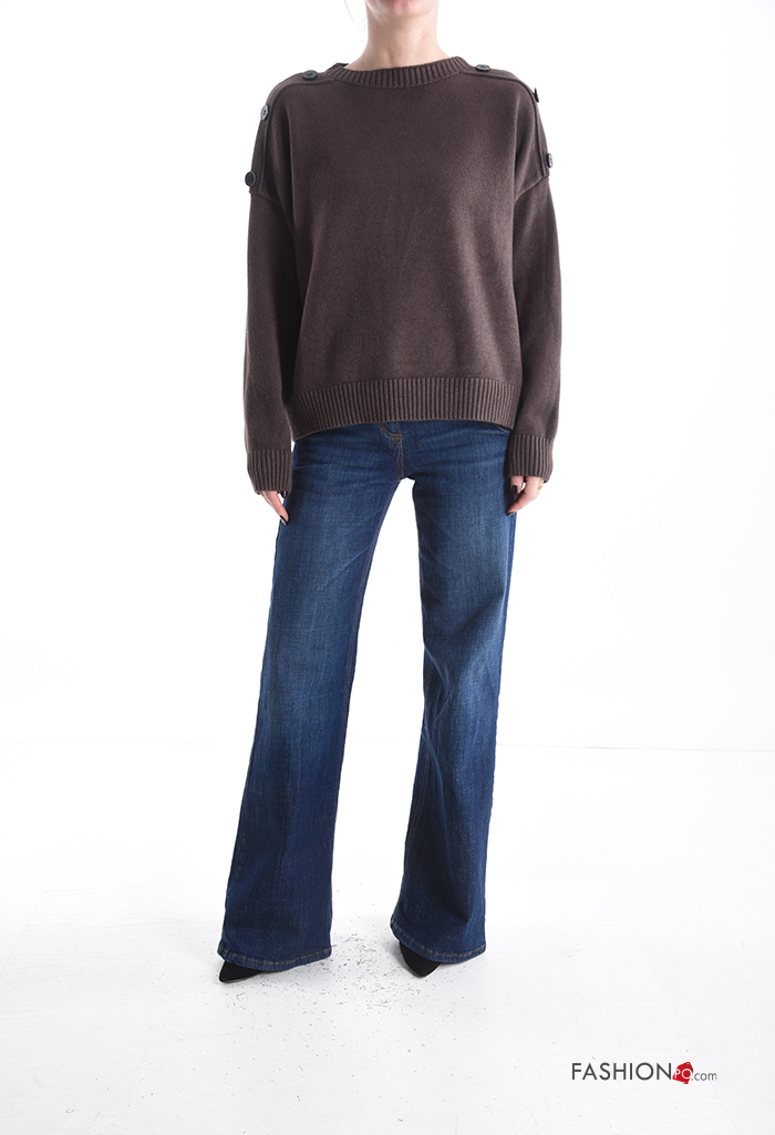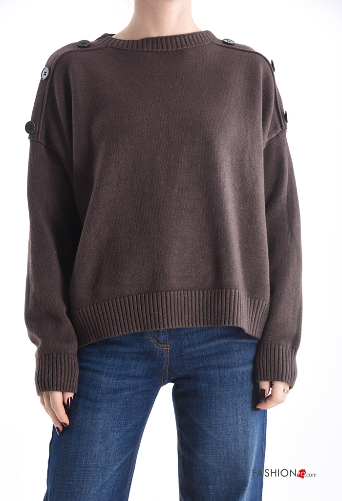 Maglione maniche lunghe girocollo con bottoni