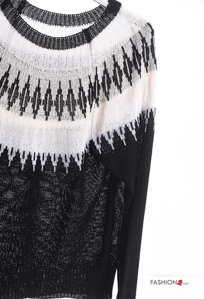 Maglione maniche lunghe girocollo Fantasia geometrica