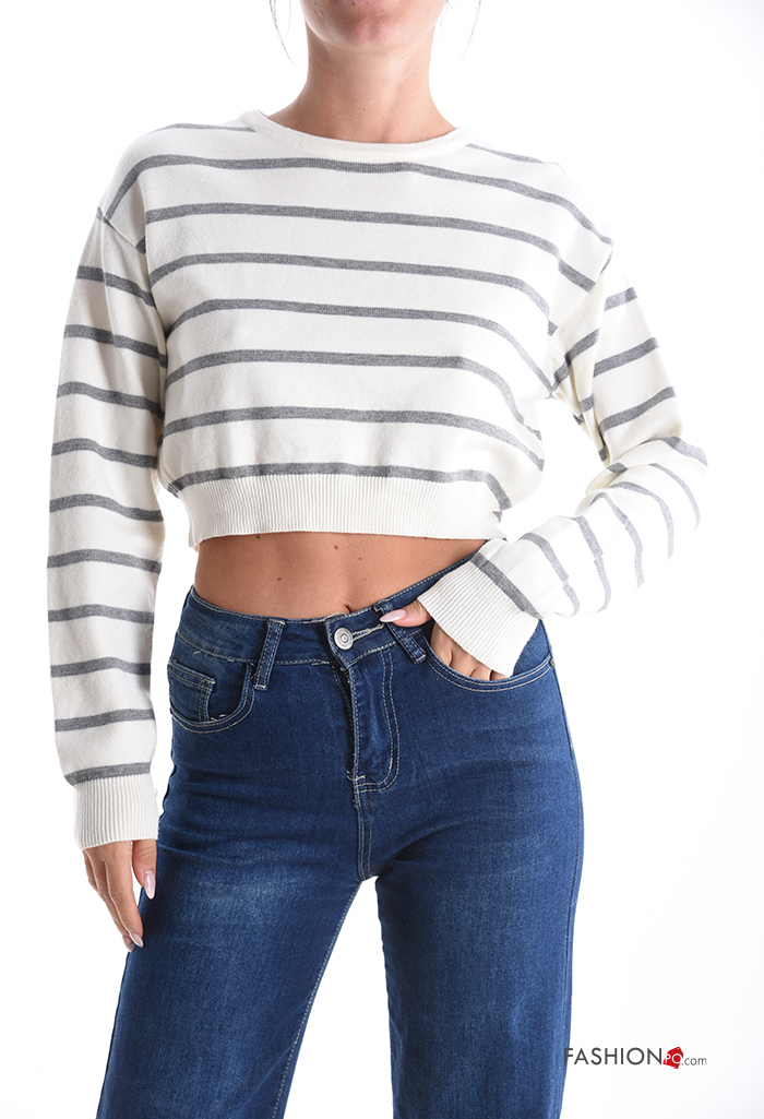 Maglione corto girocollo Fantasia righe