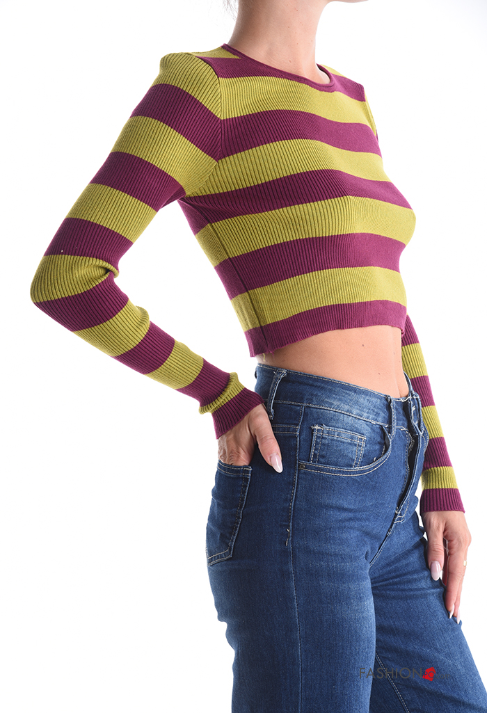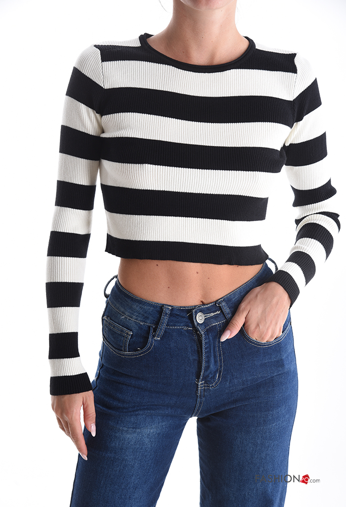 Maglione corto maniche lunghe girocollo Fantasia righe