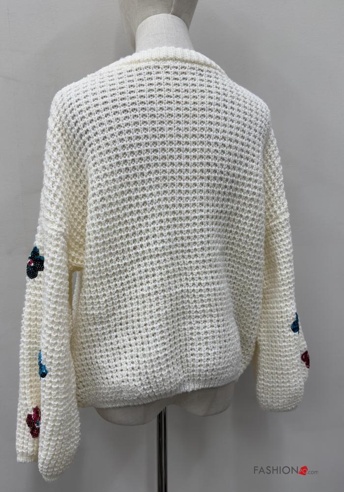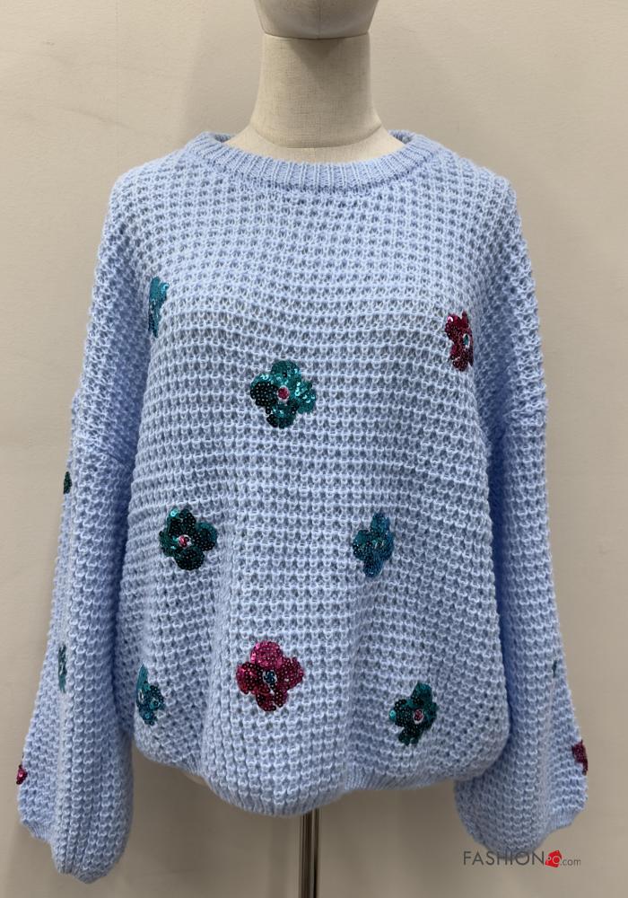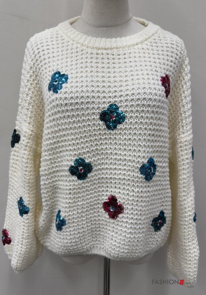 Maglione maniche lunghe girocollo Fantasia ricamata con paillettes