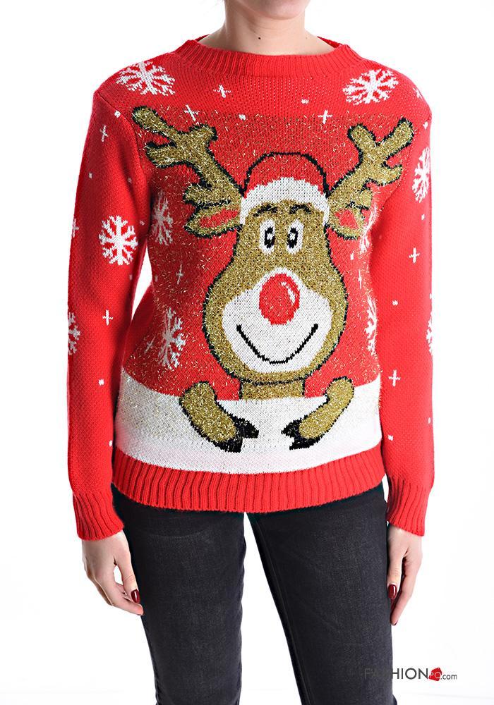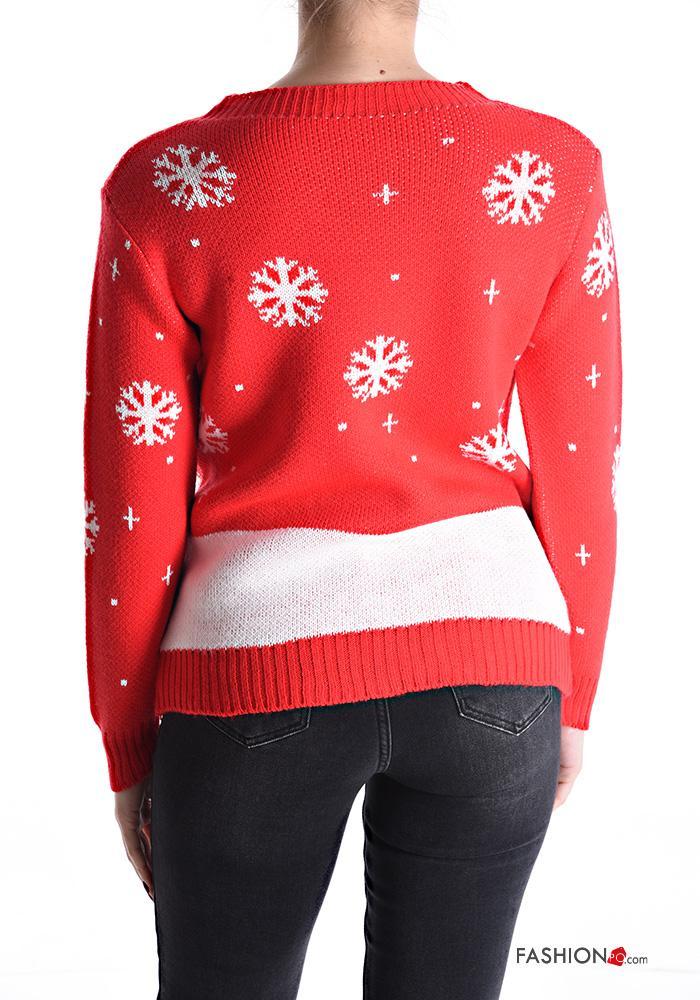 Maglione maniche lunghe girocollo Fantasia natalizia