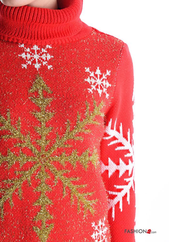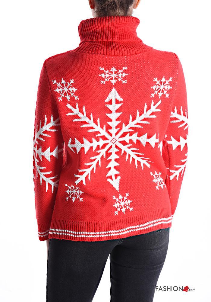 Maglione maniche lunghe Fantasia natalizia a collo alto
