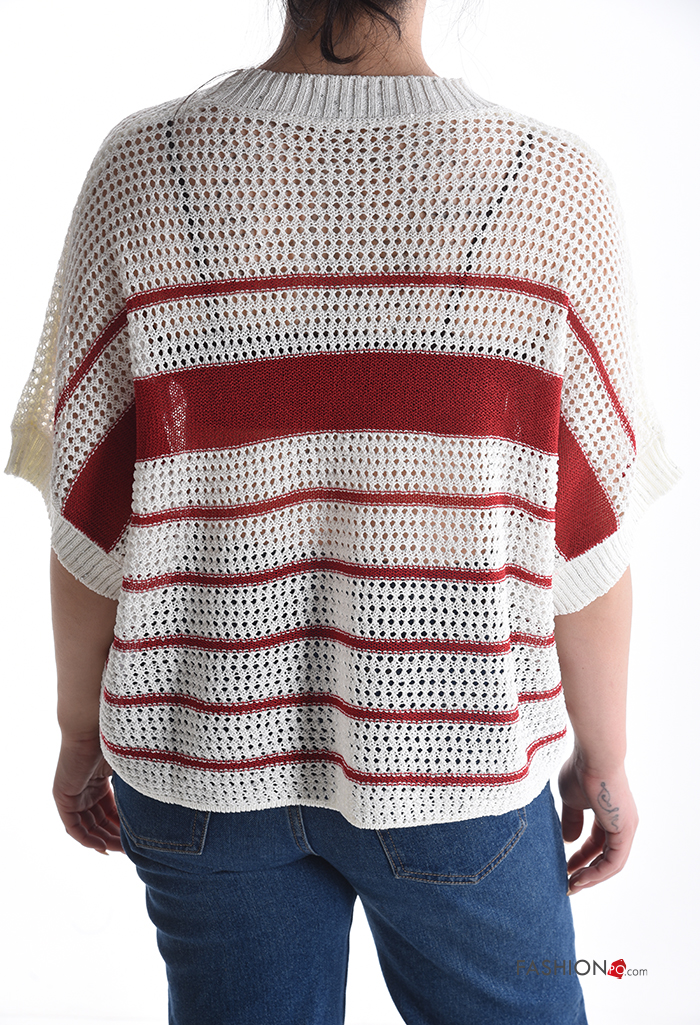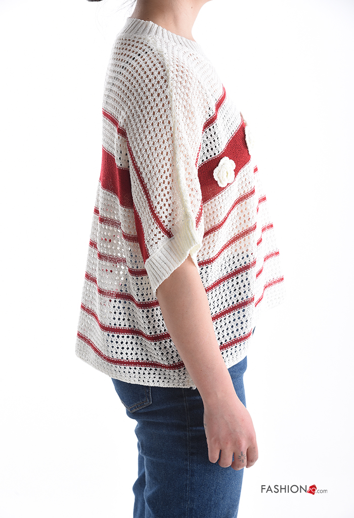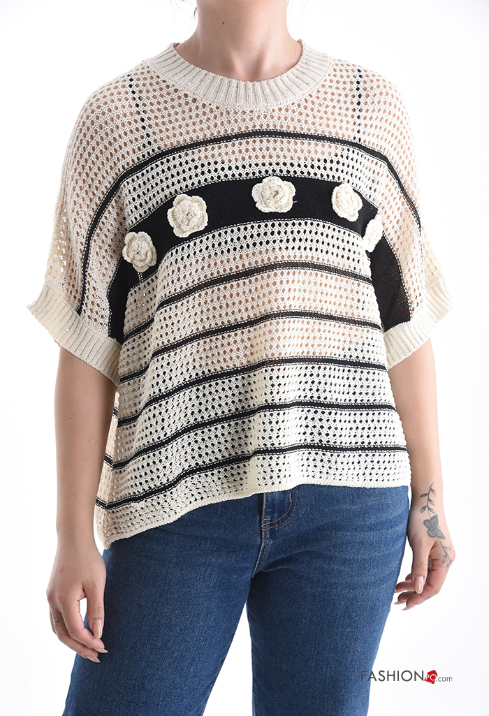 Maglione in Cotone a rete maniche corte girocollo Fantasia ricamata