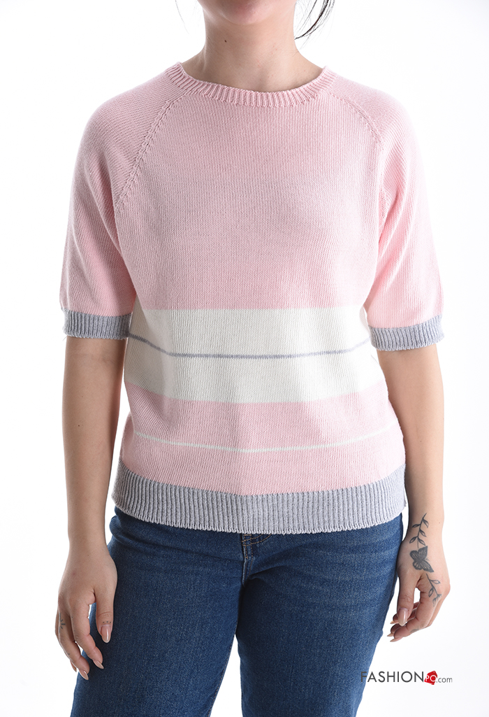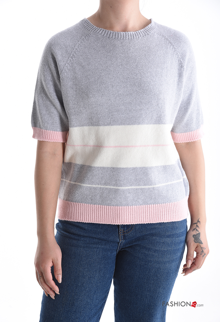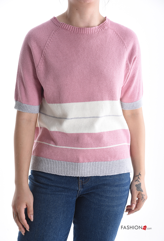 Maglione in Cotone maniche corte girocollo Fantasia righe