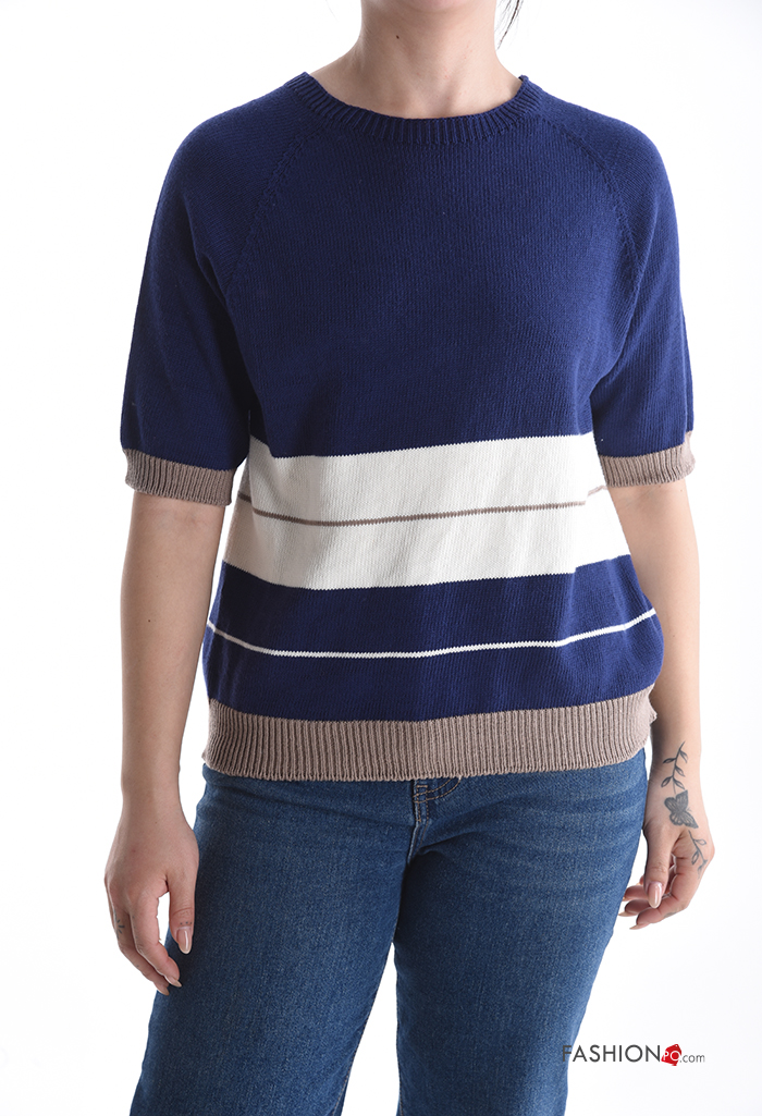 Home > Abbigliamento > Maglieria e Cardigan > Maglione in Cotone maniche corte girocollo Fantasia righe