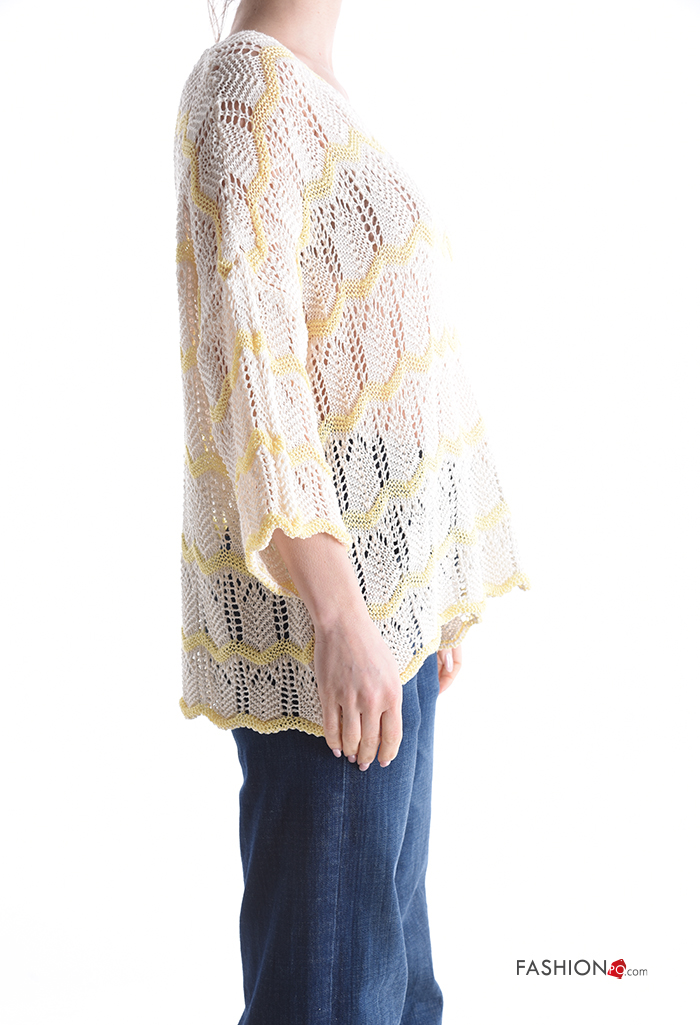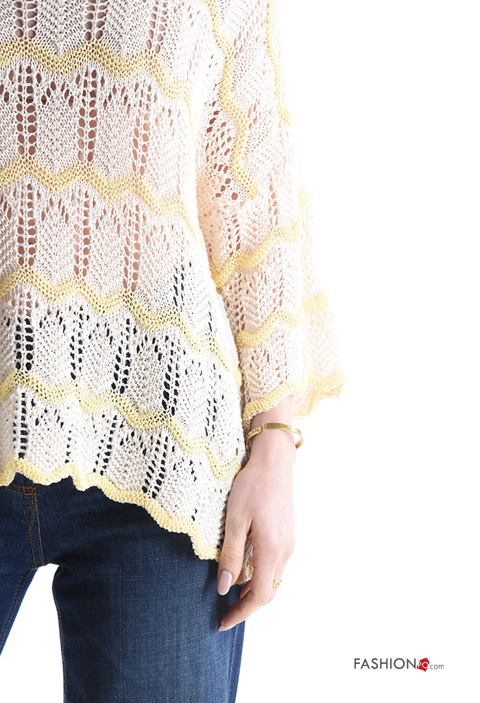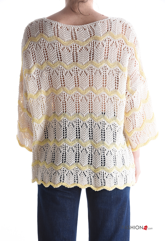 Maglione in Cotone macramé girocollo Fantasia righe
