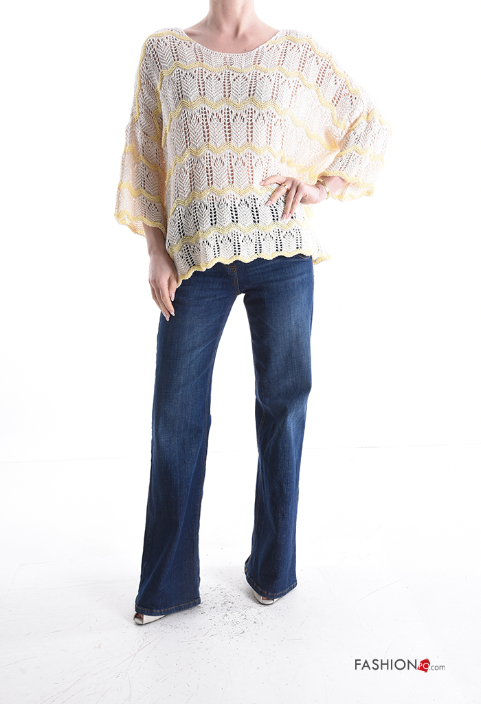 Home > Abbigliamento > Maglieria e Cardigan > Maglione in Cotone macramé girocollo Fantasia righe