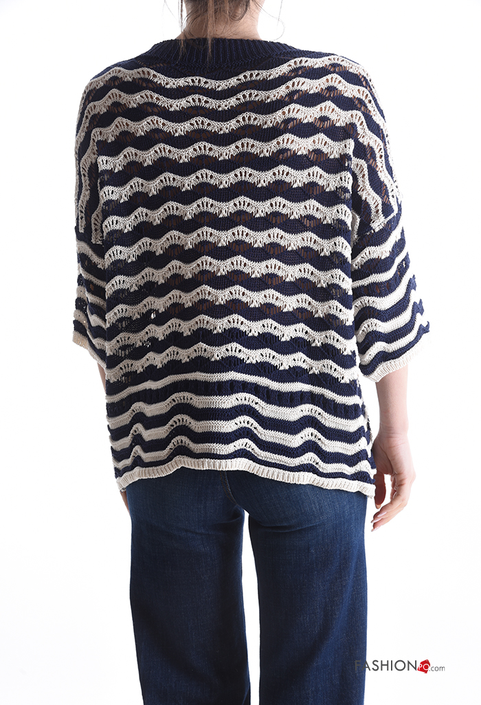 Home > Abbigliamento > Maglieria e Cardigan > Maglione in Cotone girocollo Fantasia righe maniche a tre quarti
