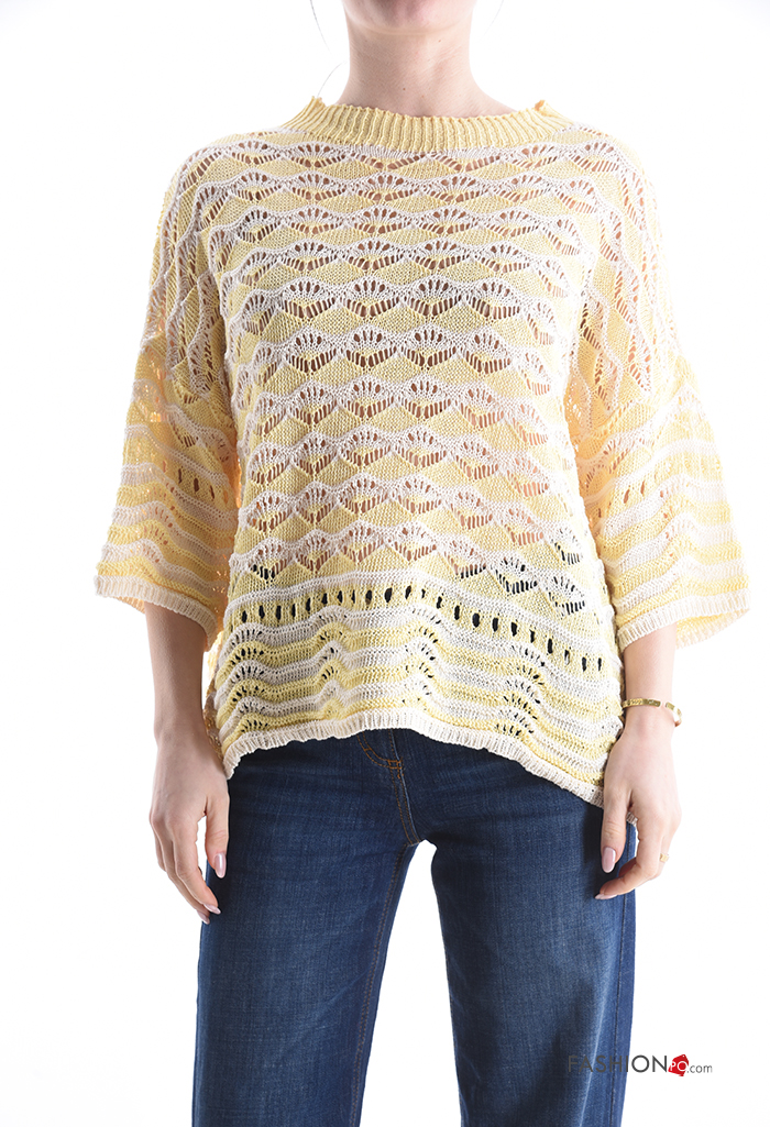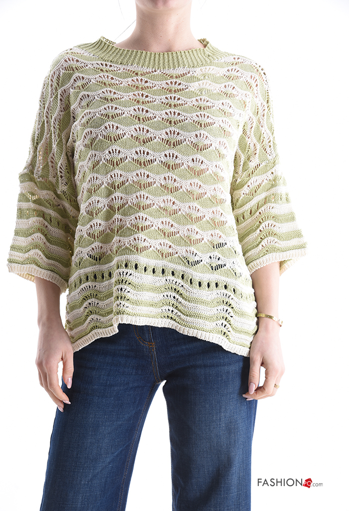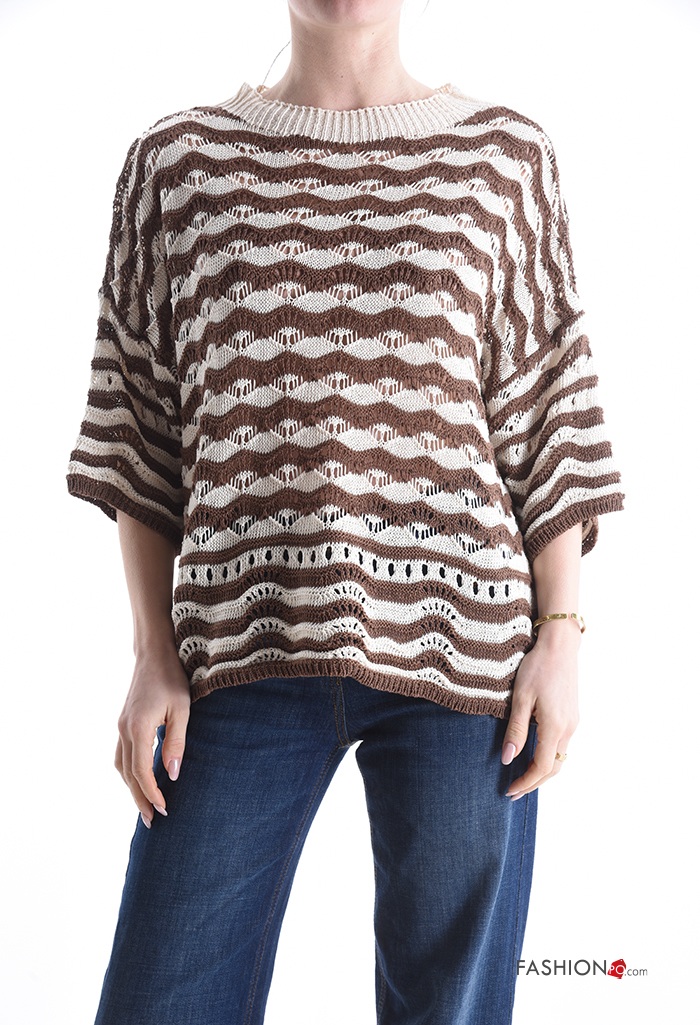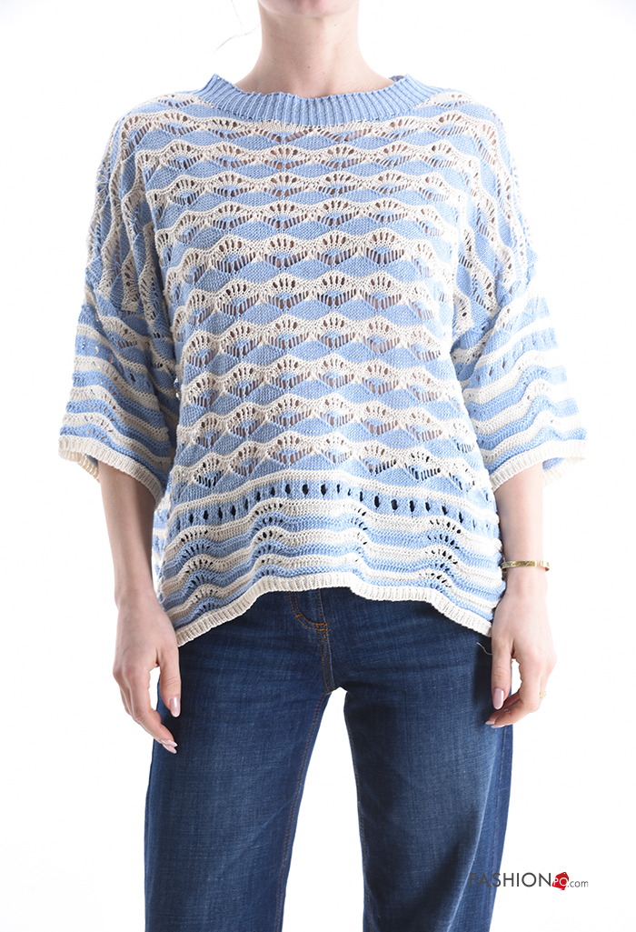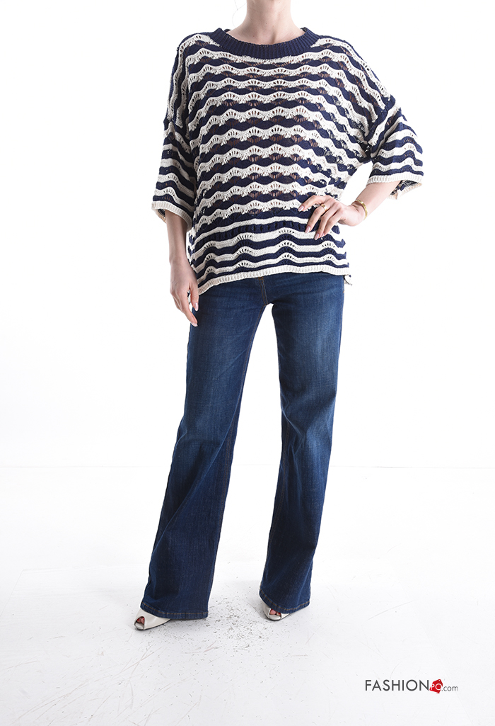 Maglione in Cotone girocollo Fantasia righe maniche a tre quarti