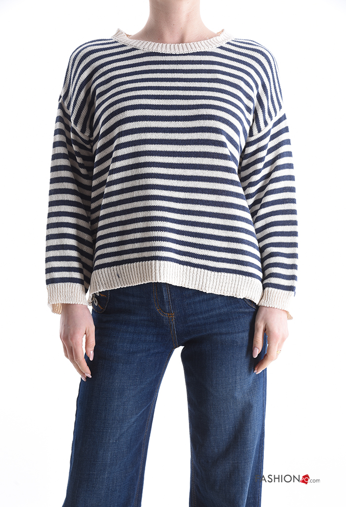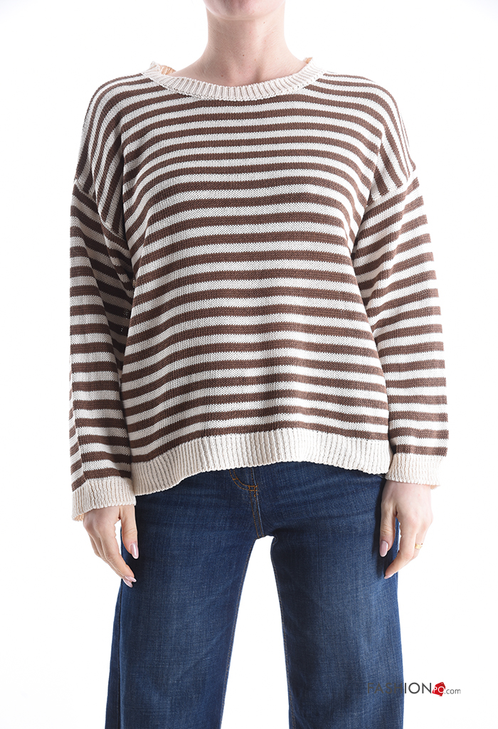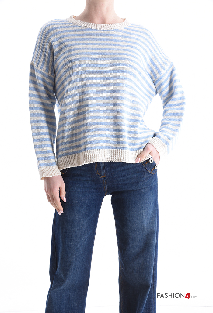 Home > Abbigliamento > Maglieria e Cardigan > Maglione in Cotone maniche lunghe girocollo Fantasia righe