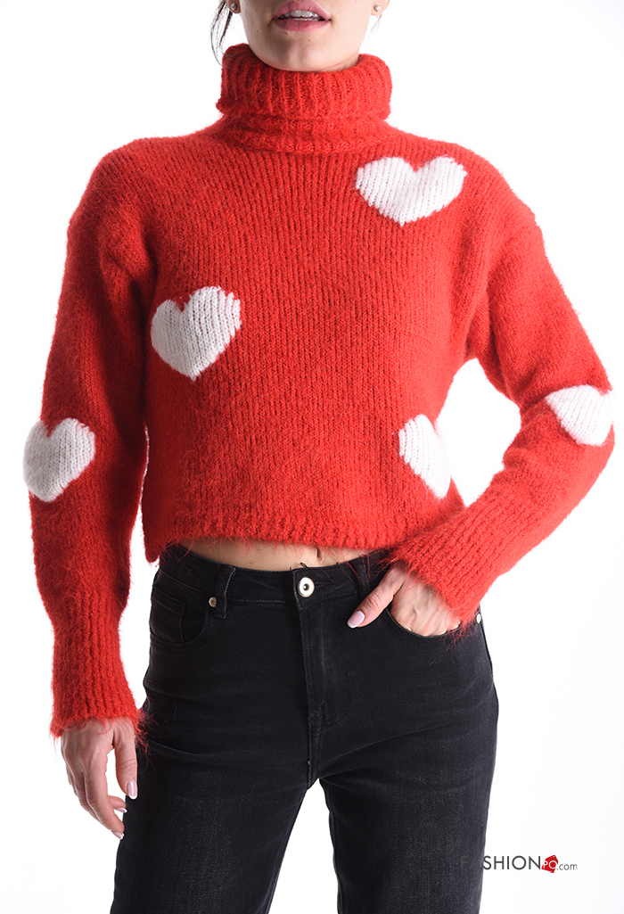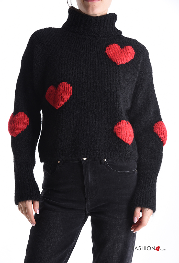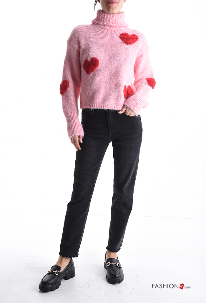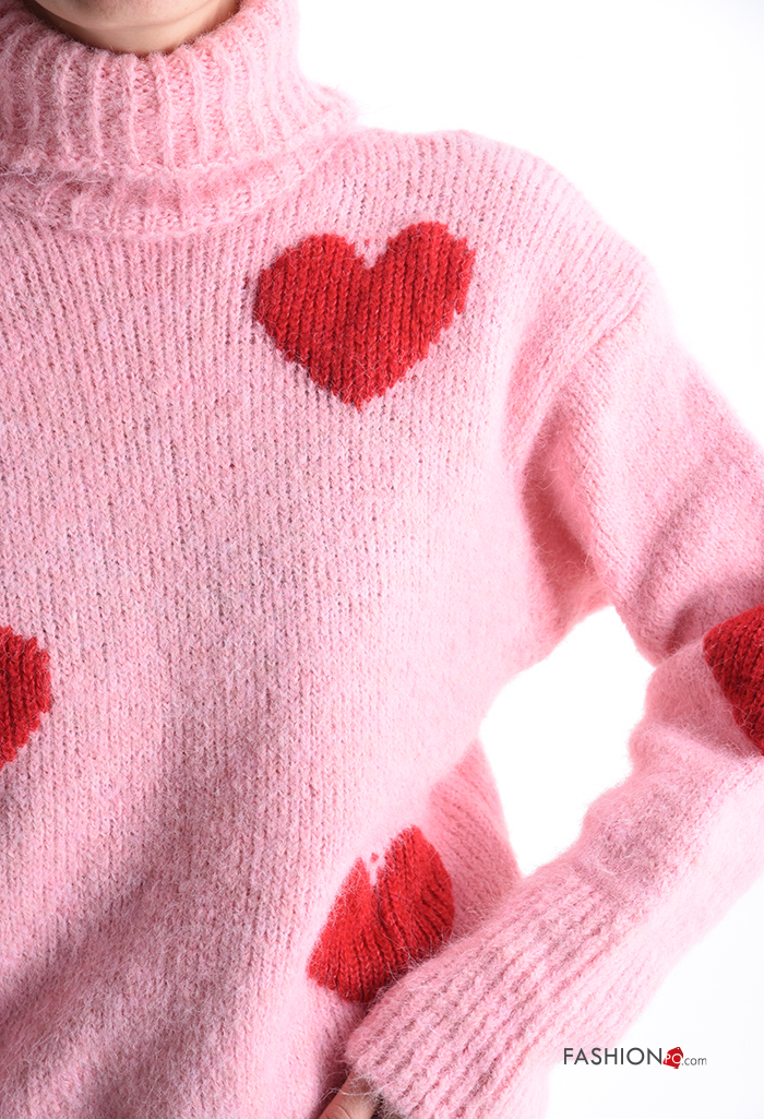 Maglione in Misto Lana maniche lunghe Fantasia cuore a collo alto
