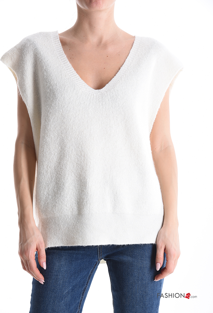 Home > Abbigliamento > Maglieria e Cardigan > Maglione in Misto Lana costine maniche corte scollo a V