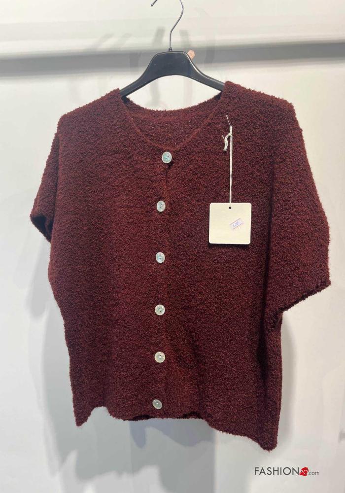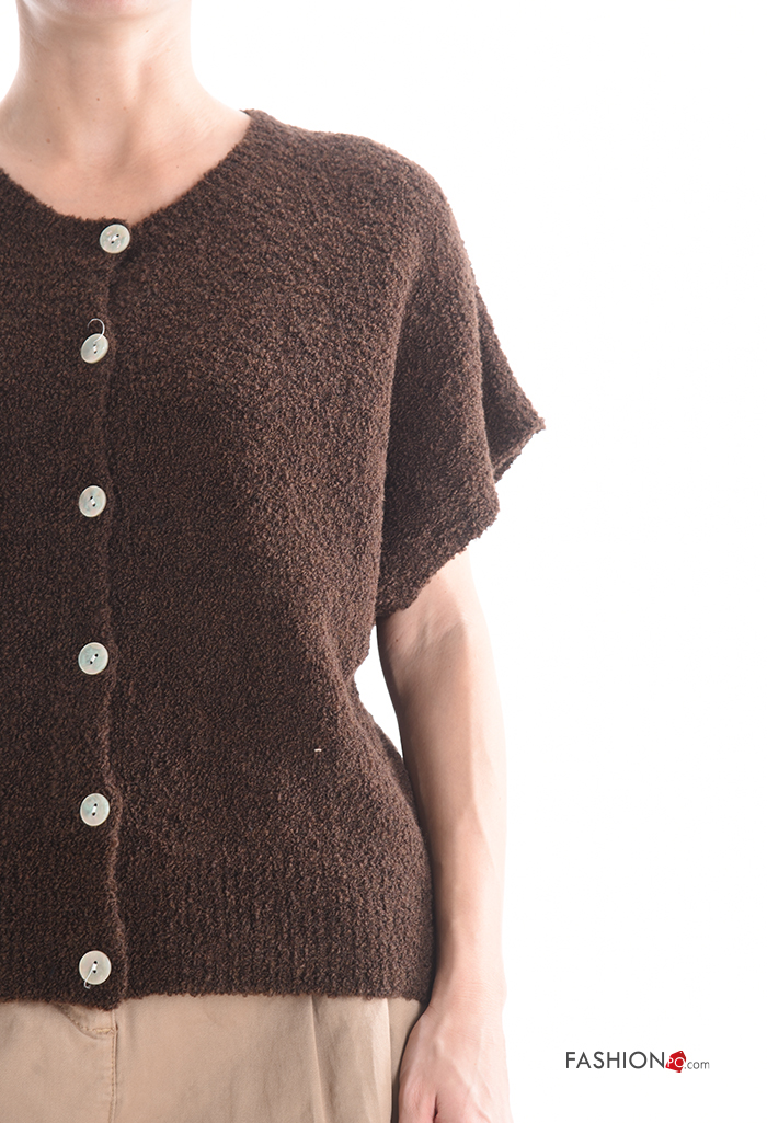 Cardigan in Misto Lana maniche corte girocollo con bottoni