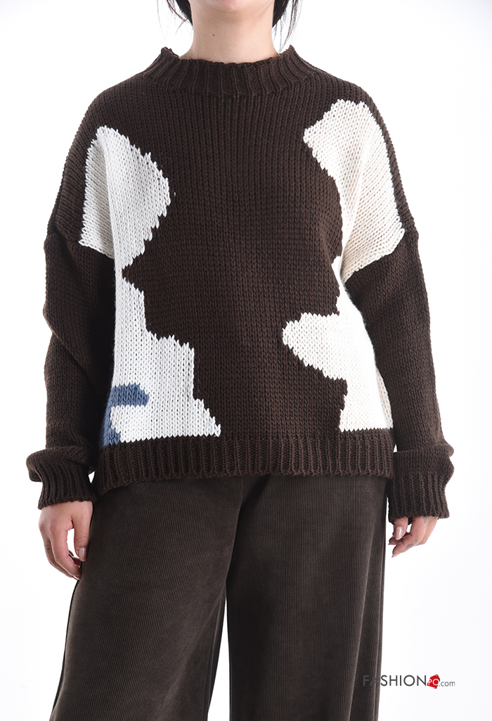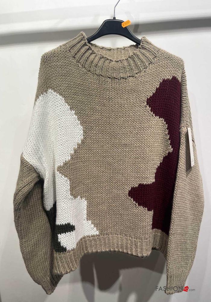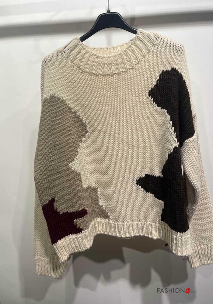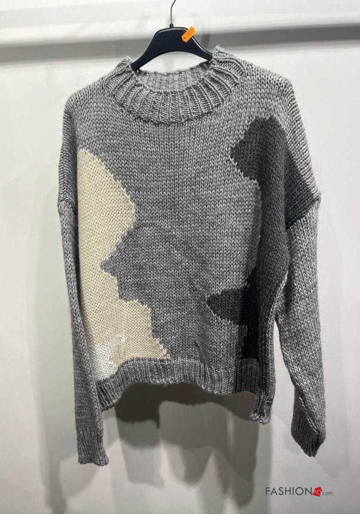 Maglione in Misto Lana maniche lunghe girocollo Fantasia astratta