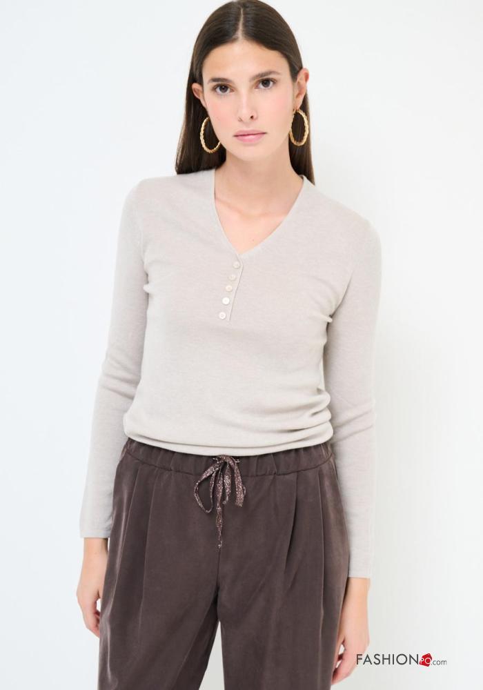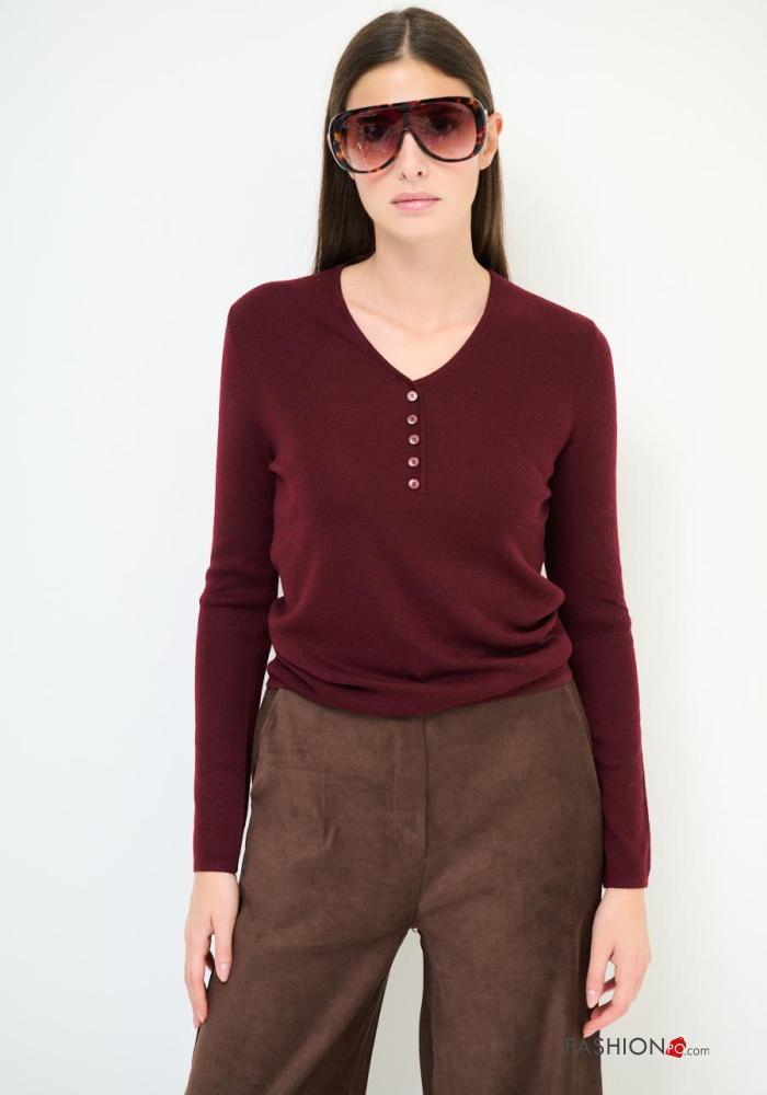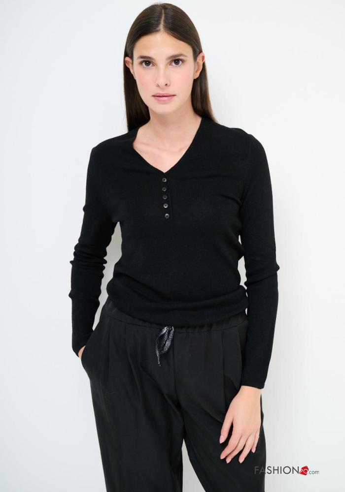 Maglione in Misto Lana maniche lunghe con bottoni scollo a V