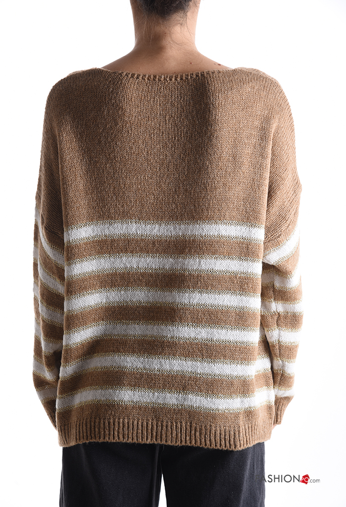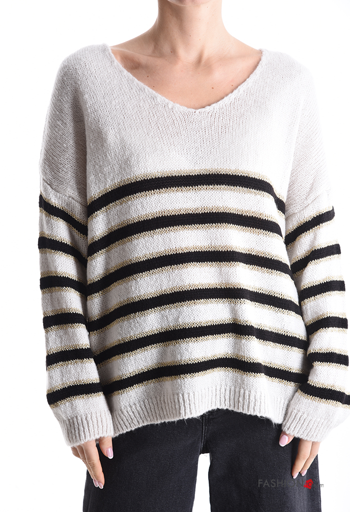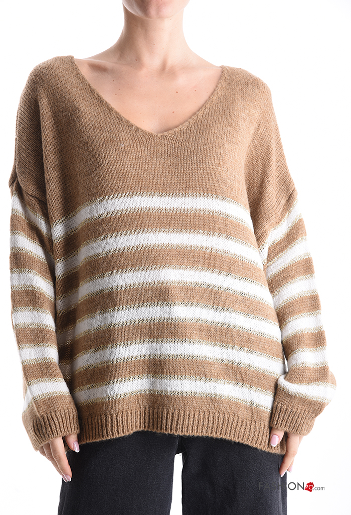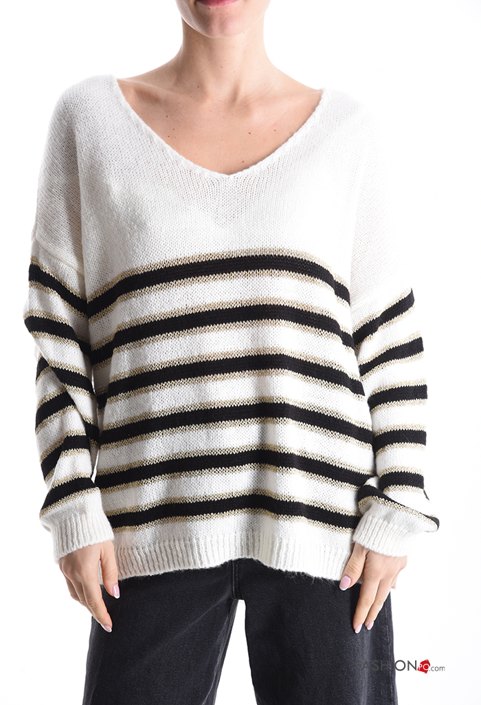 Home > Abbigliamento > Maglieria e Cardigan > Maglione in Misto Lana maniche lunghe Fantasia righe scollo a V
