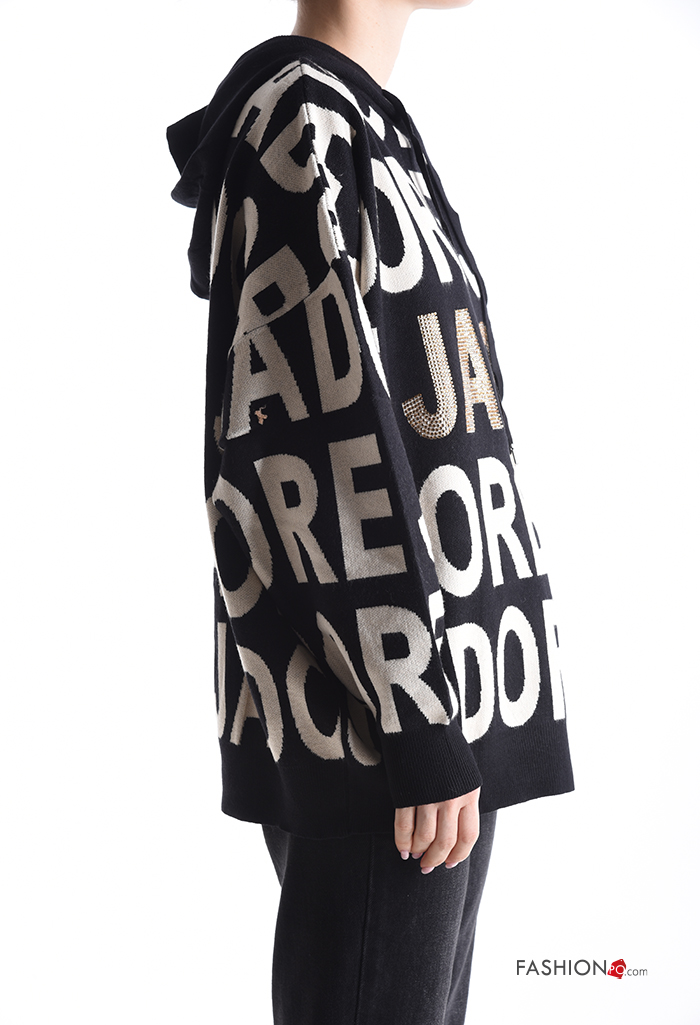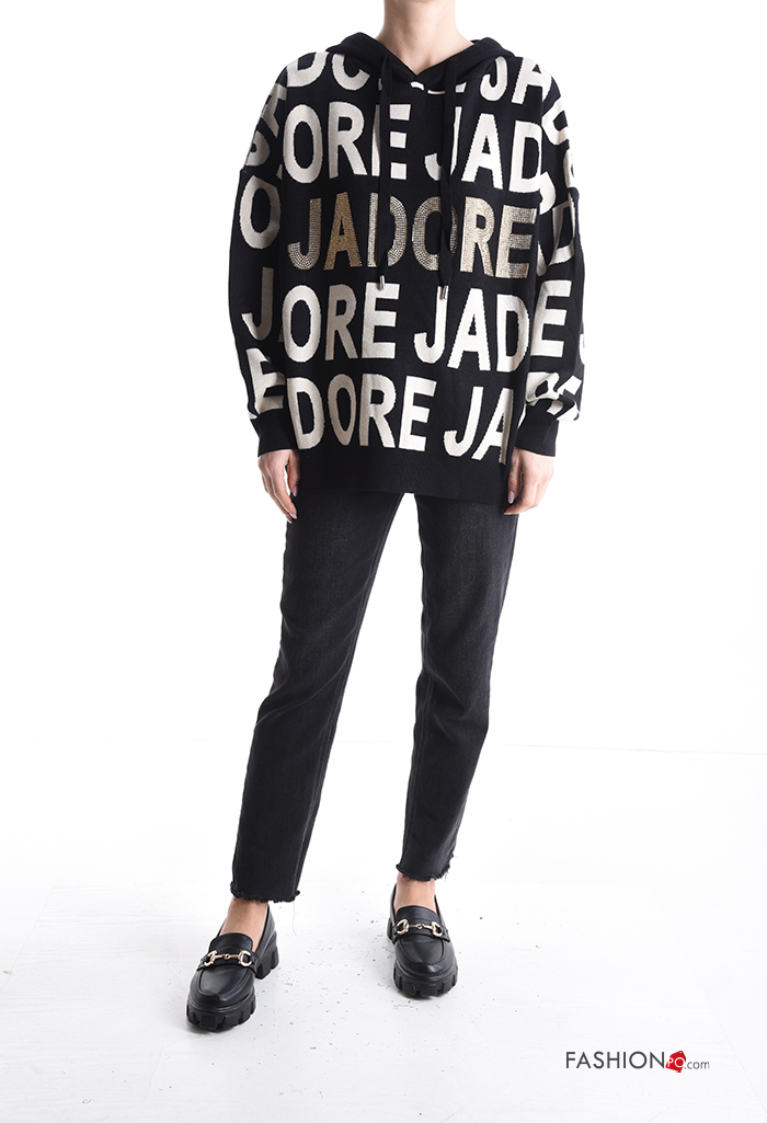 Maglione lurex maniche lunghe Fantasia scritta con cappuccio