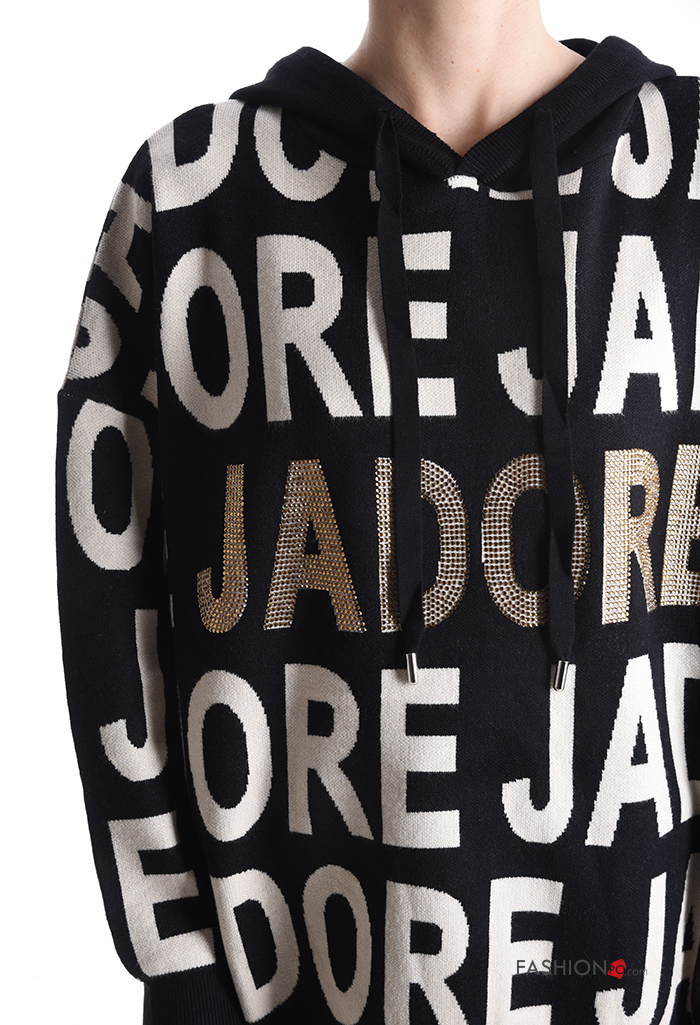 Home > Abbigliamento > Maglieria e Cardigan > Maglione lurex maniche lunghe Fantasia scritta con cappuccio