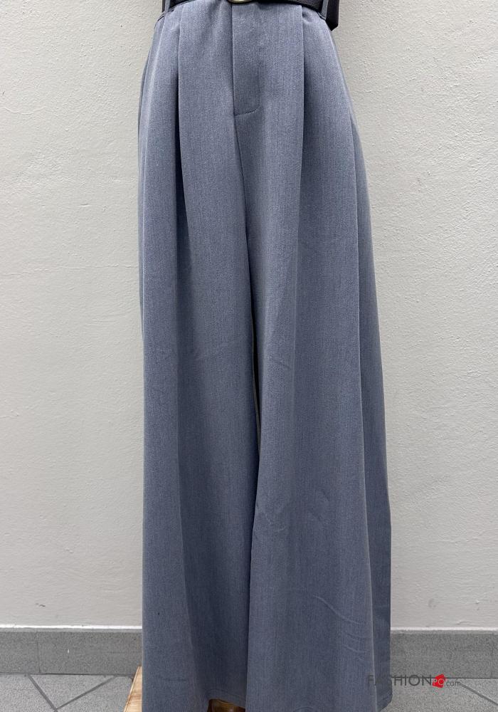 Pantalone vita alta wide leg con cintura con tasche