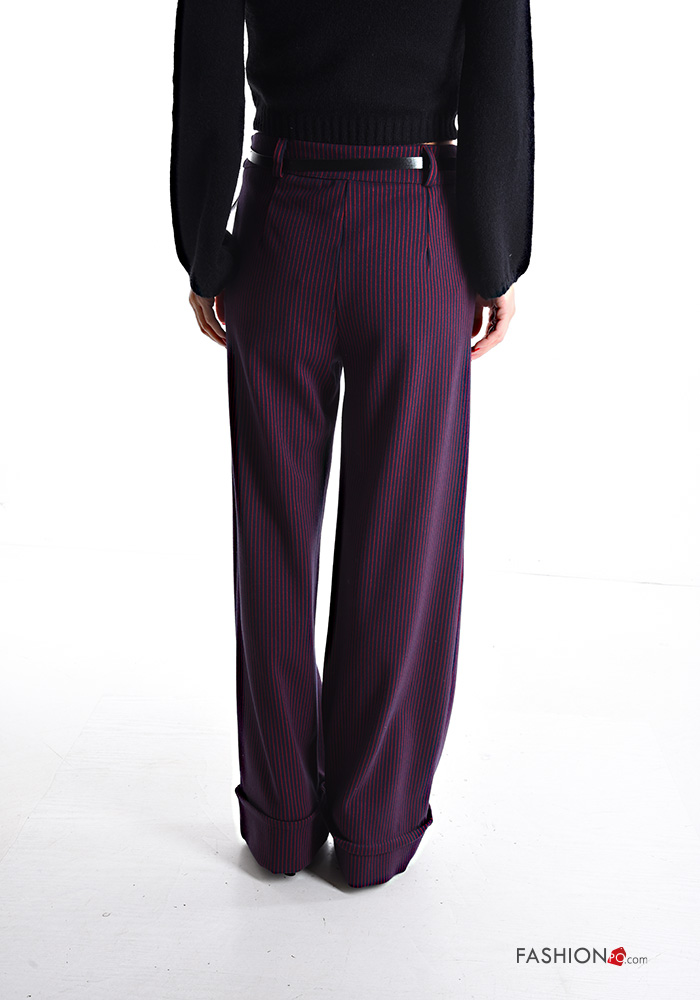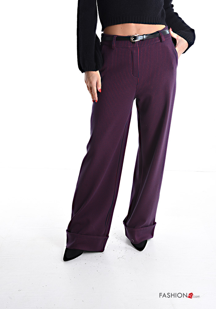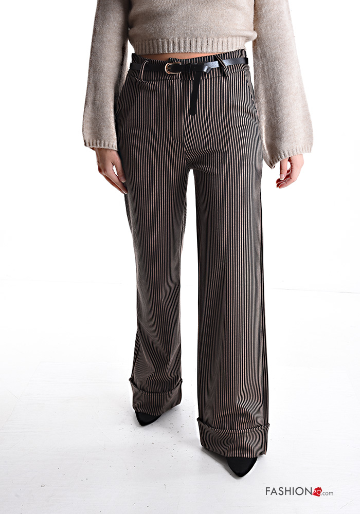 Pantalone wide leg Fantasia righe con cintura con zip con tasche con bottoni