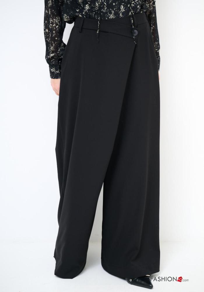 Pantalone wide leg con bottoni con tasche
