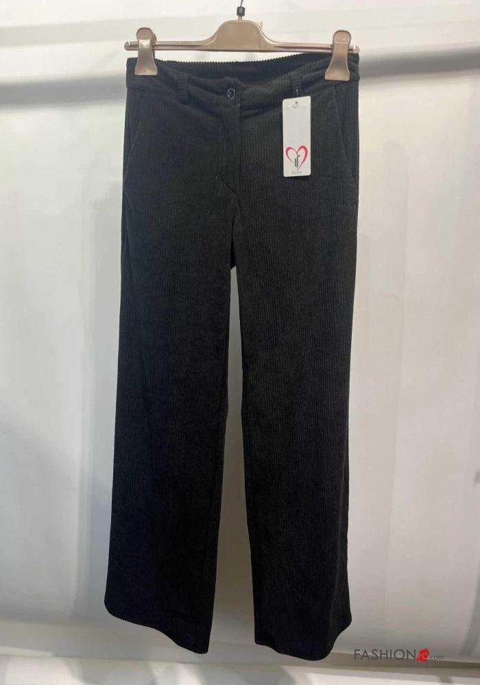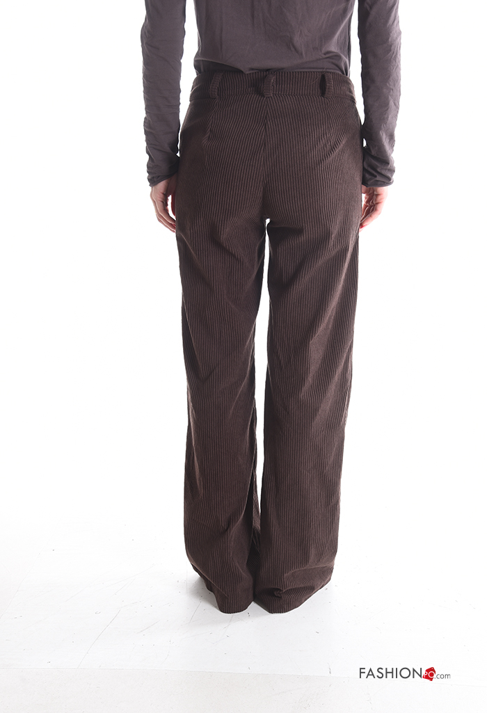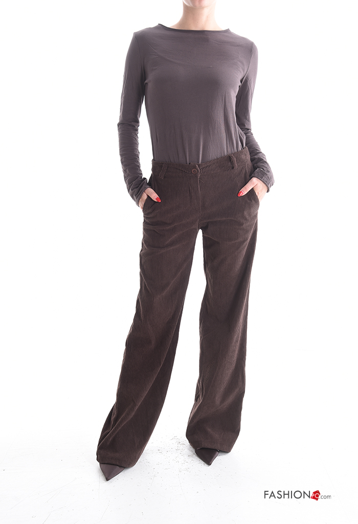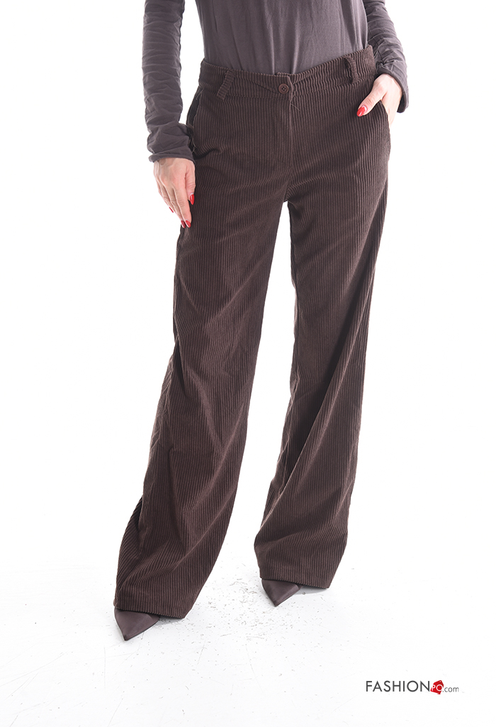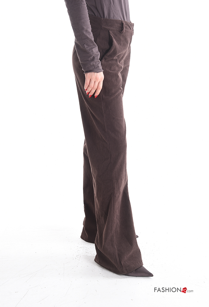 Pantalone lungo in velluto costine con tasche con bottoni con zip