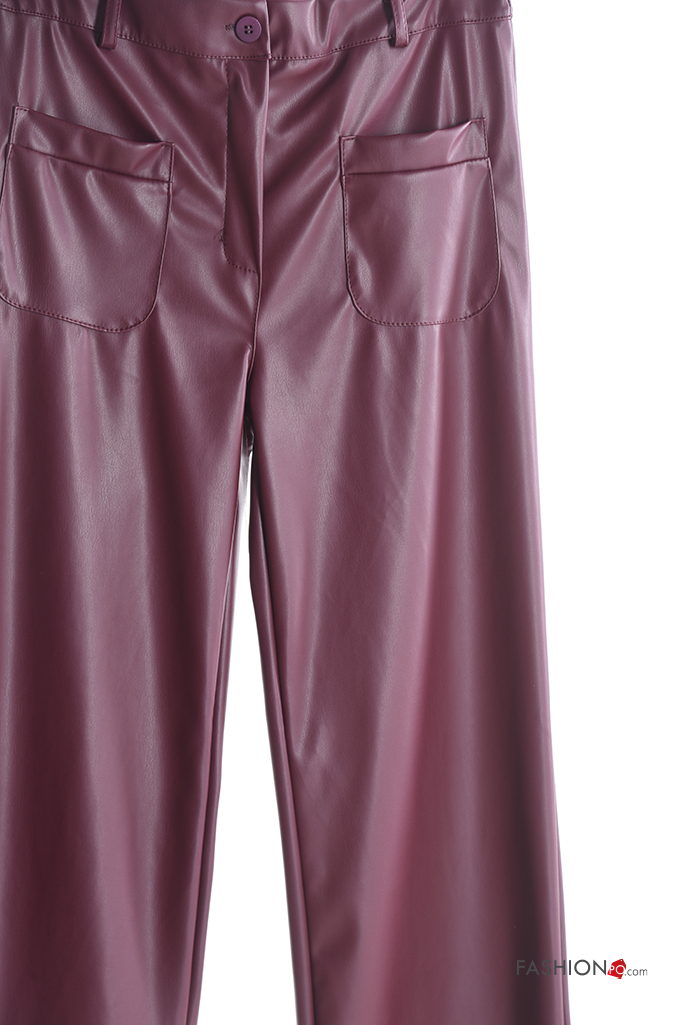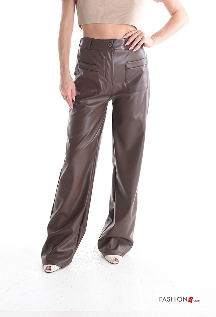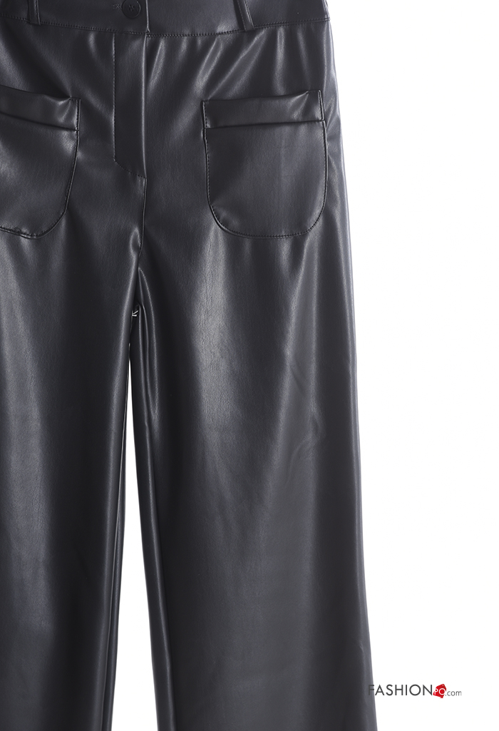Home > Abbigliamento > Pantaloni > Pantalone lungo ecopelle vita alta con tasche con bottoni con zip