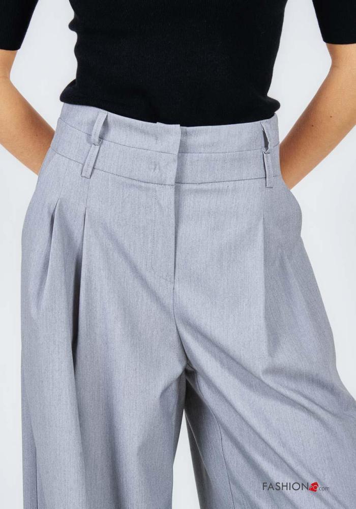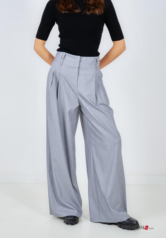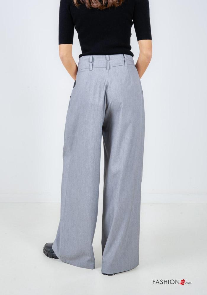 Pantalone vita alta wide leg con tasche con bottoni con zip