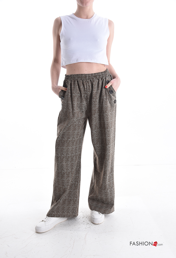 Home > Abbigliamento > Pantaloni > Pantalone wide leg Fantasia tartan con elastico con bottoni con tasche