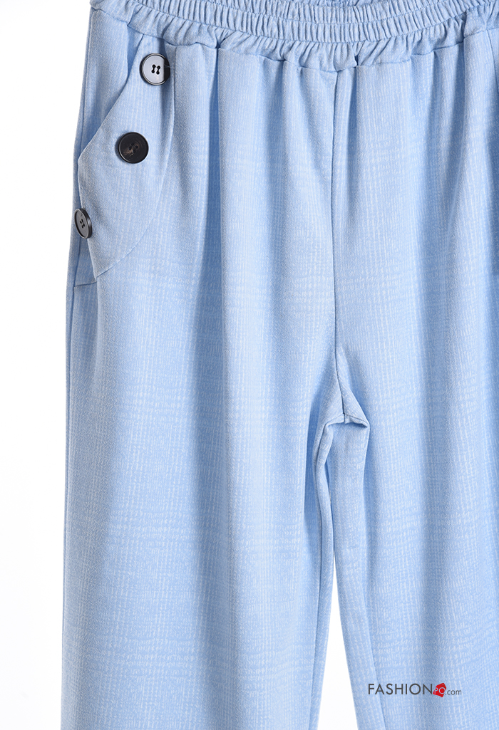 Pantalone wide leg Fantasia tartan con elastico con bottoni con tasche